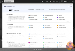 To test the TVS-1282 we used the 4.3.3 (0404) version of QNAP’s QTS OS. QNAP’s QTS is a graphically-rich powerful OS with links to the major functions appearing as icons on the main page.