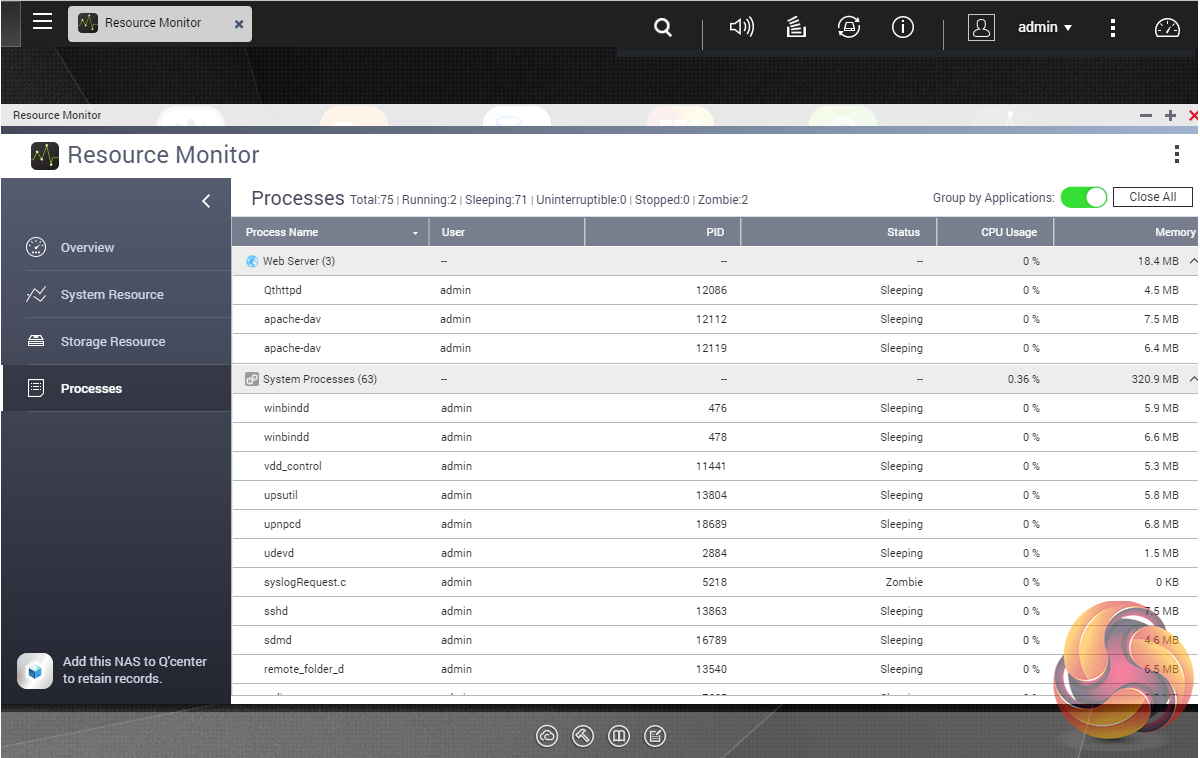 The Resource Monitor is a very useful tool, monitoring elements and offering detailed information on how the storage of the NAS is being used.