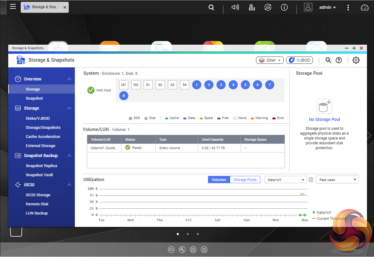 As with any NAS, disk management, RAID and volume creation are at the heart of things and with the TVS-1282 this is a complex affair as there are so many options available. But to QNAP’s credit, setting the storage space(s) up is pretty straightforward thanks to the clear and precise step by step setup pages in QTS.
