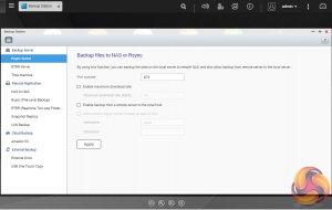 Backup Station allows backing up of data with a wide range of options, including backup servers, cloud storage, and external devices. The One Touch button on the front bezel can be set up to either upload or download files/folders or backup the NAS to an external USB drive. In the Backup Station pages in the QTS you can set up exactly what you want the One Touch system to do.