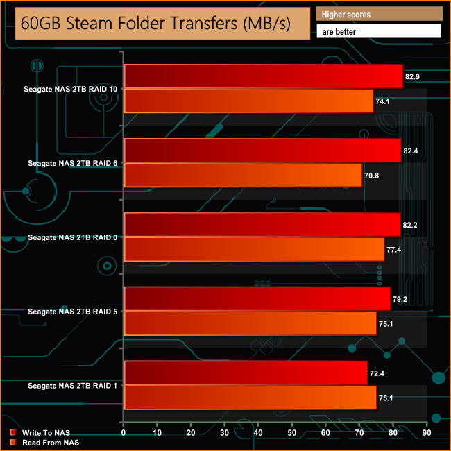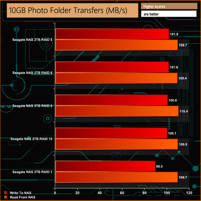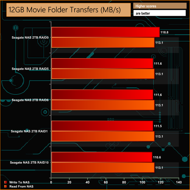 The TVS-473-16G had no difficulties when dealing with the real life test folder tests showing a good deal of consistency across the range of arrays tested.
