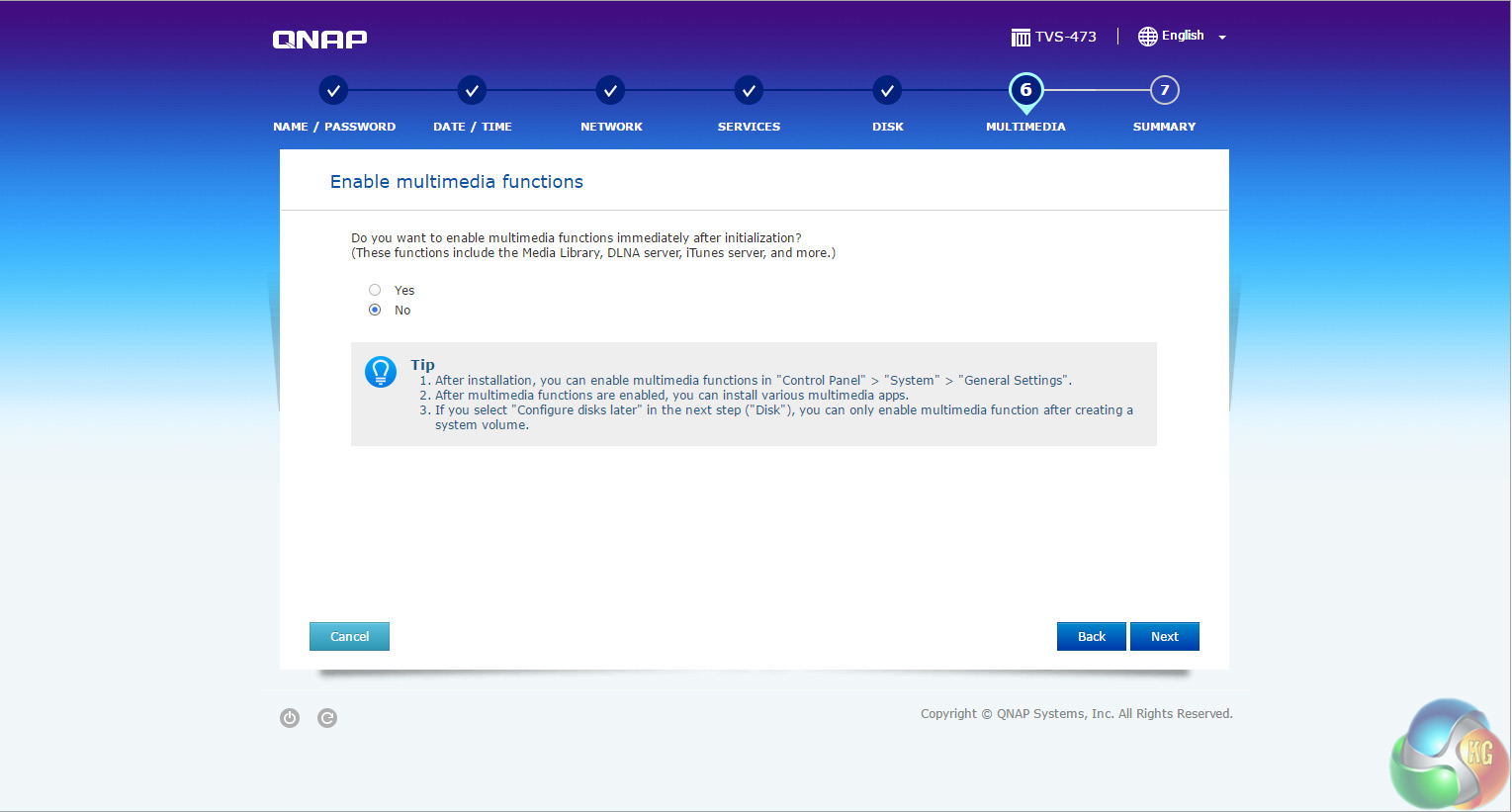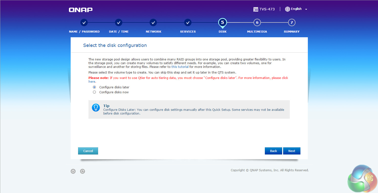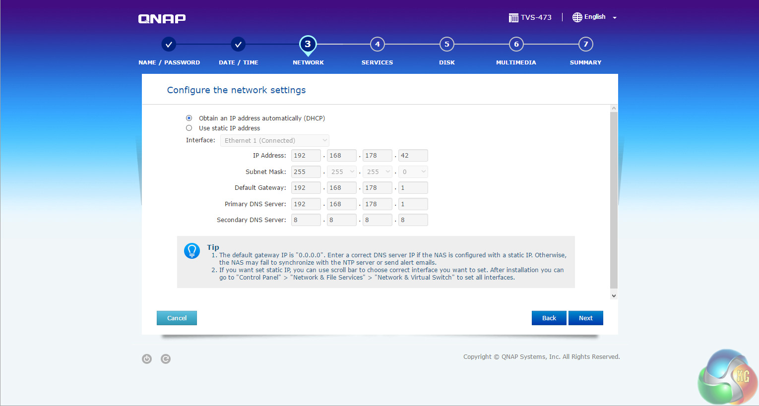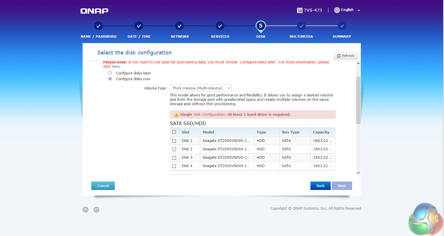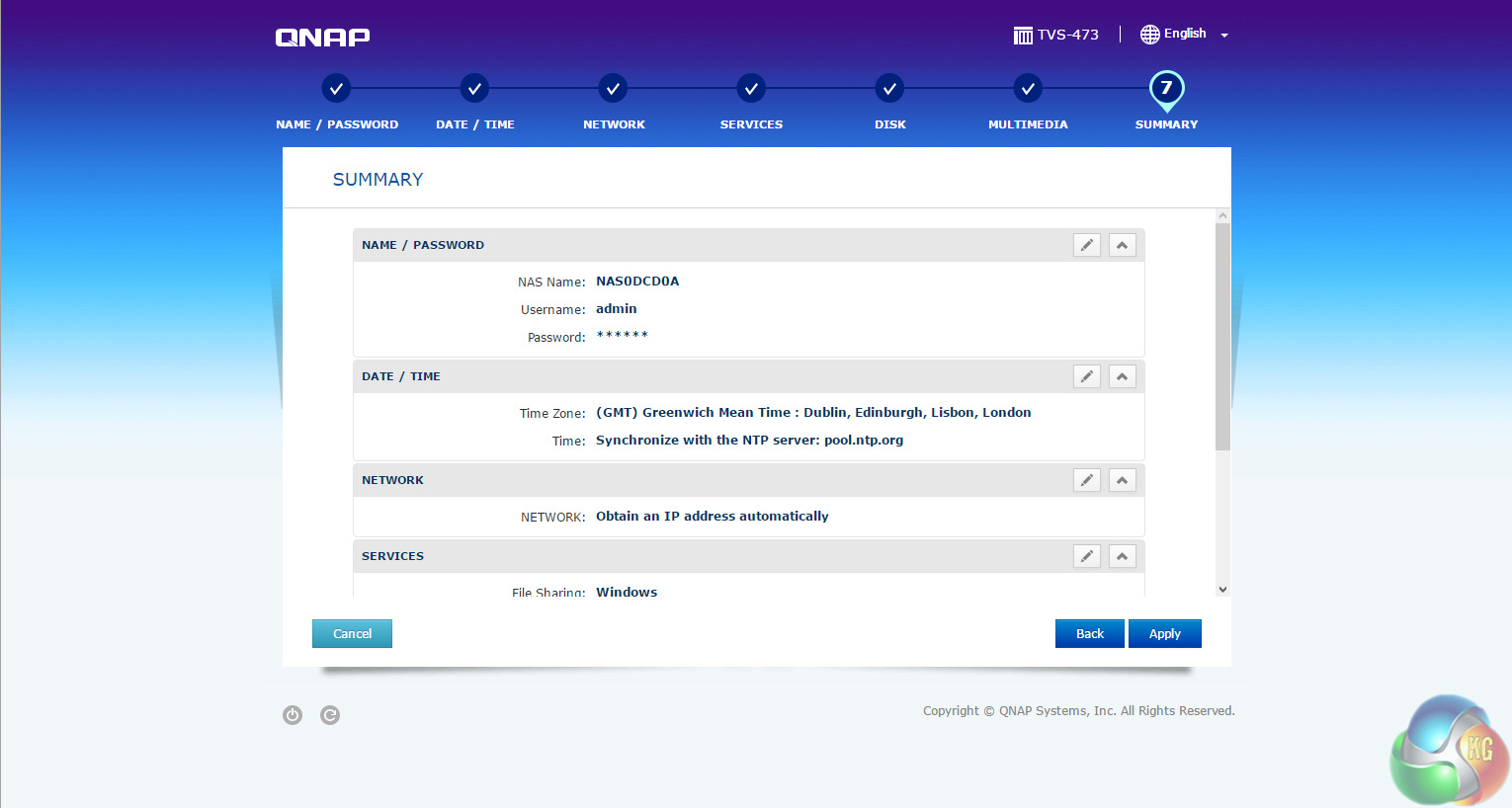 There are two ways of setting up a QNAP NAS either online by entering the Cloud key which is on the side of the unit or by using QNAP’s Qfinder Pro utility. Its then a matter of following the install wizard to get the NAS ready for use.