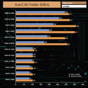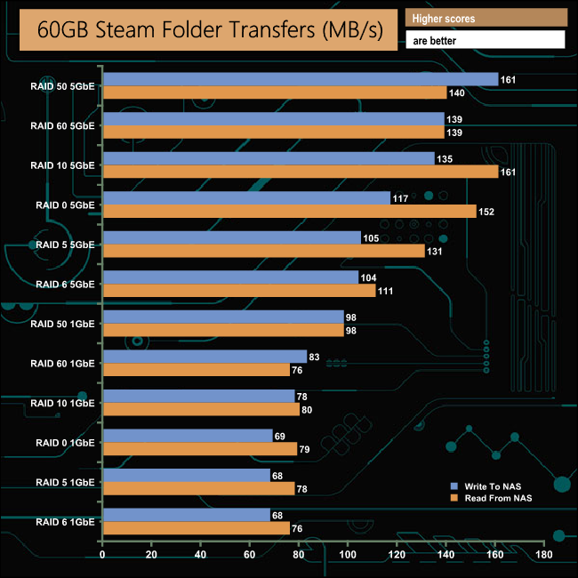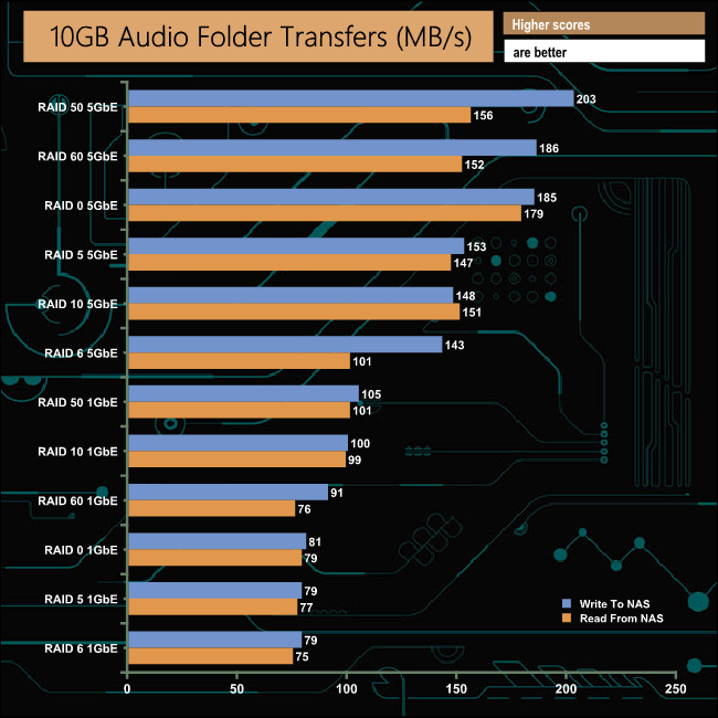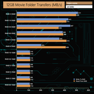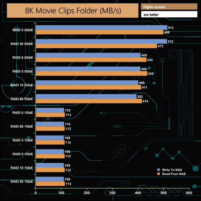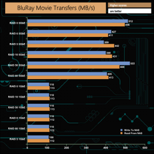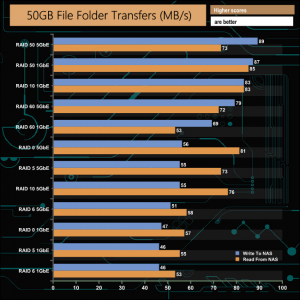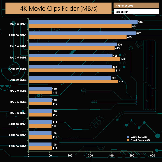 To test real-life file/folder performance we use a number of different file/folder combinations to test the read and write performance of the NAS device. Using the FastCopy utility to get an MB/s and time taken for each transfer, the data is written from and read back to a 240GB SSD.