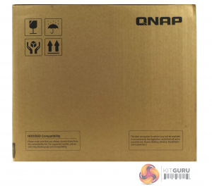 The rear of the box has a group of icons in the bottom left-hand corner representing some of the QTS OS features; Data Protection, Surveillance Station, Mobile Management, Private Cloud, File Sharing and Backup Station.