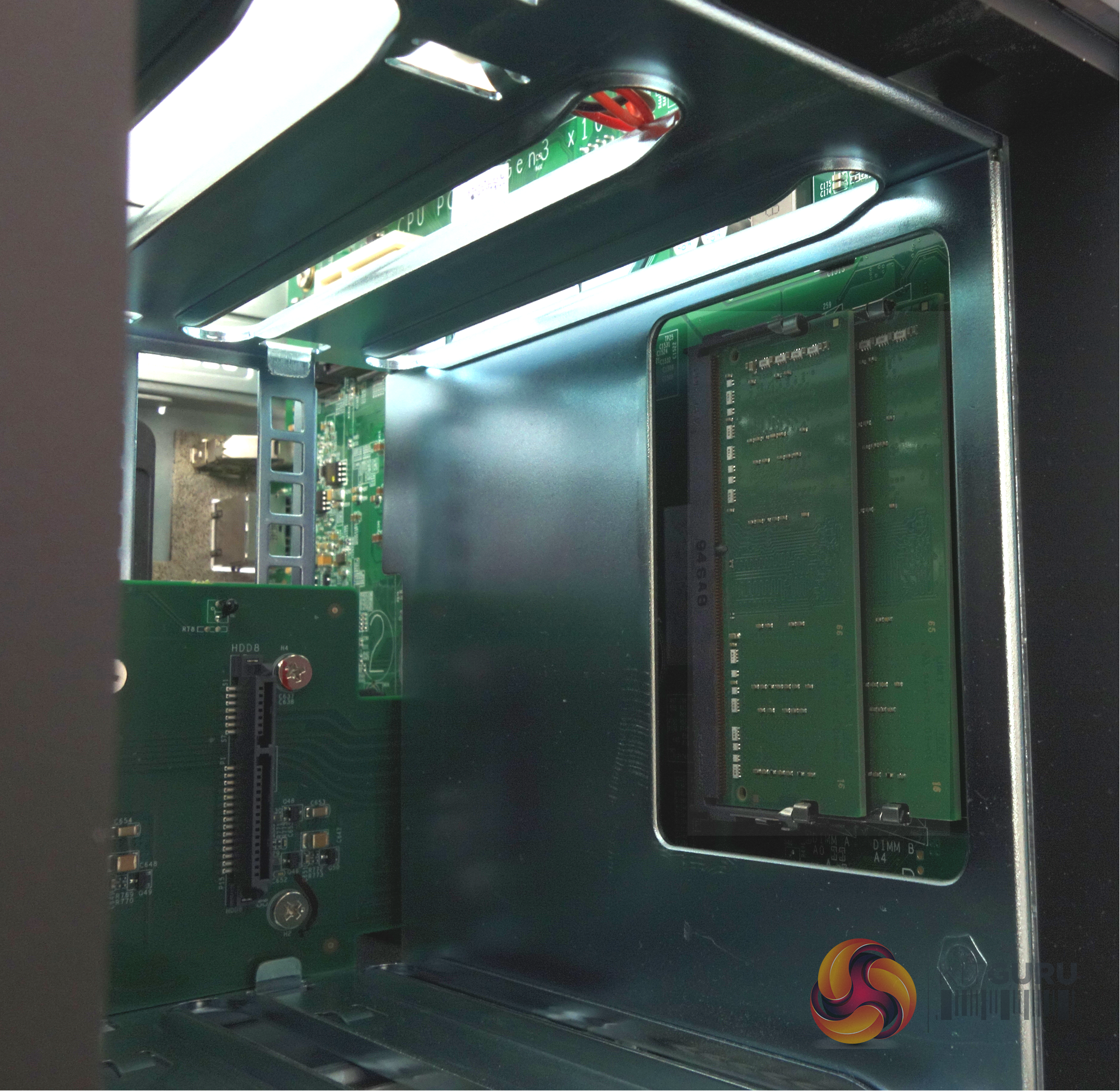 The two SODIMM memory slots sit behind a cut-out in the inner panel next to drive bay one (there's a little label on the top of the NAS showing how the drive bays are numbered). The TVS-872N comes with 8GB of DDR4-2666 memory but the motherboard supports up to a maximum of 32GB via these two slots.