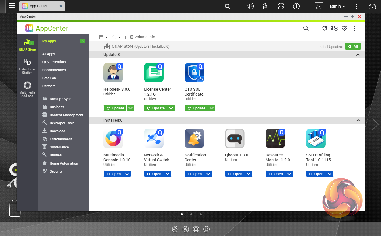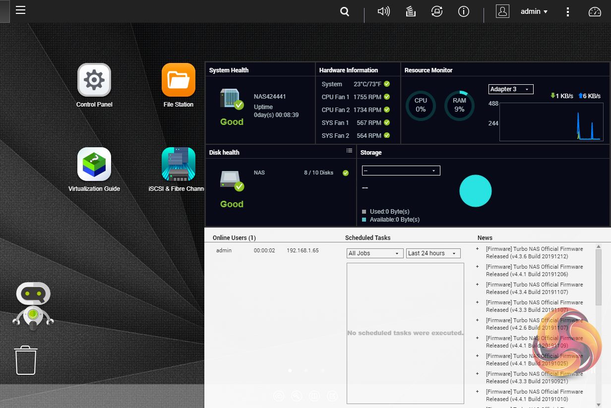 To test the TVS-872N we used the latest (at the time of testing) 4.4.1.1216 version of QNAP’s QTS OS. QNAP’s QTS is a graphically-rich OS with links to the major functions appearing as icons on the main page.