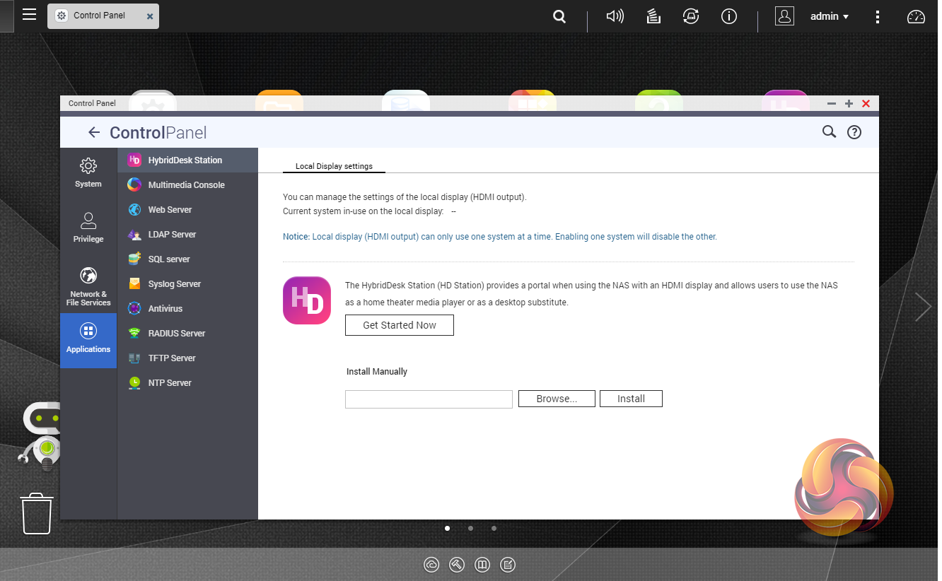 HybridDesk Station is a platform that connects a NAS to an HDMI-compatible TV or monitor enabling direct access to multimedia content and other applications. By installing HD Station and then connecting a USB keyboard and mouse together with an HDMI equipped display, the TS-251B can be used as a 4K output HTPC with the bonus of not needing a PC to use it.