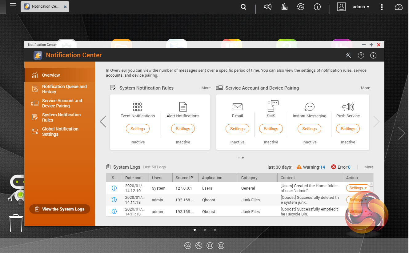 Notification Center is a very useful app that consolidates system logs and notifications for all the apps on the NAS into one single app. It supports flexible rule settings for easier NAS management and allows for more notification methods including email, SMS, instant message, and push notification.