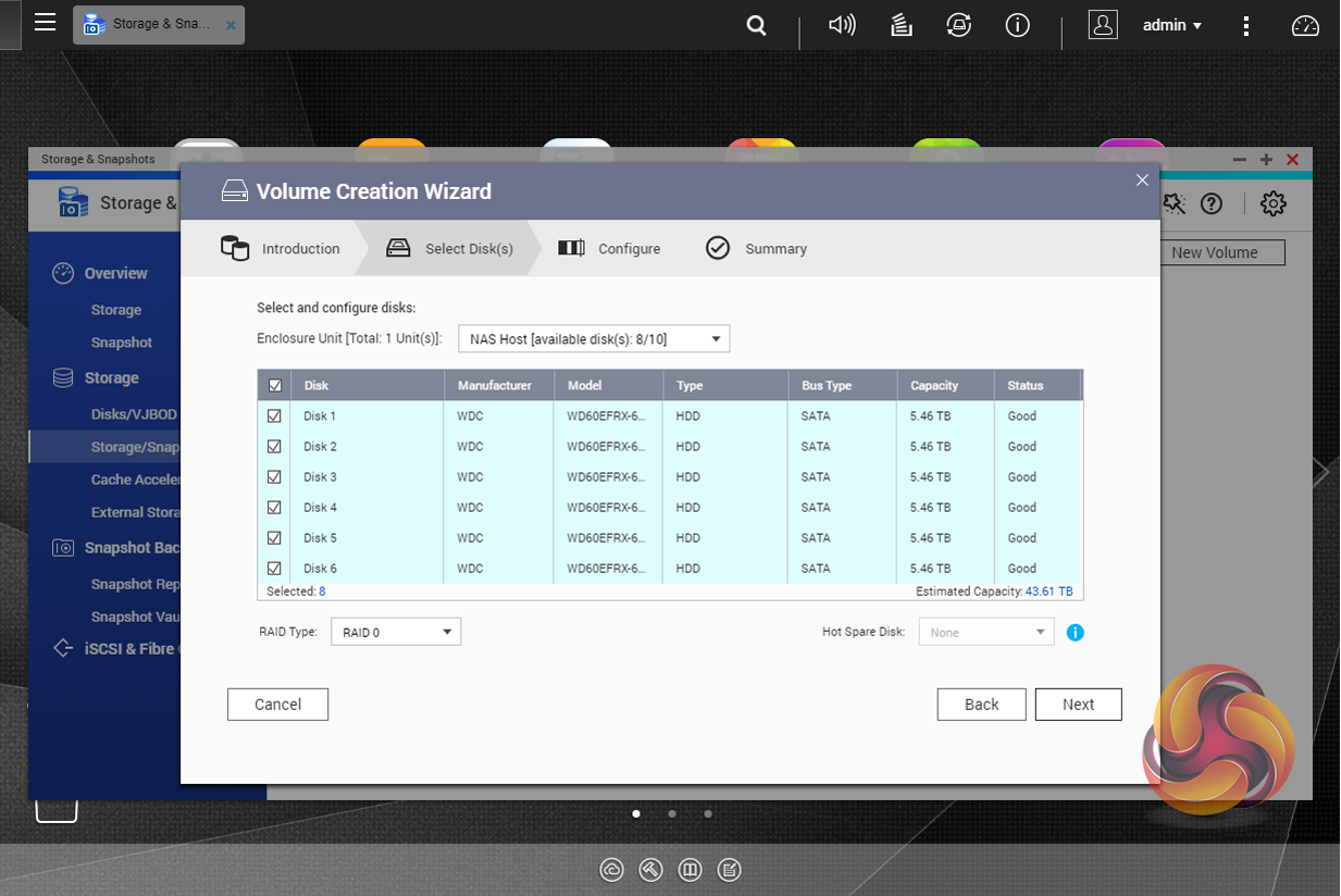 As with any NAS, disk management, RAID and volume creation are at the heart of things. Setting up storage pools and volumes up are pretty straightforward thanks to the clear and precise step by step setup pages in the QTS Storage & Snapshots Manager.