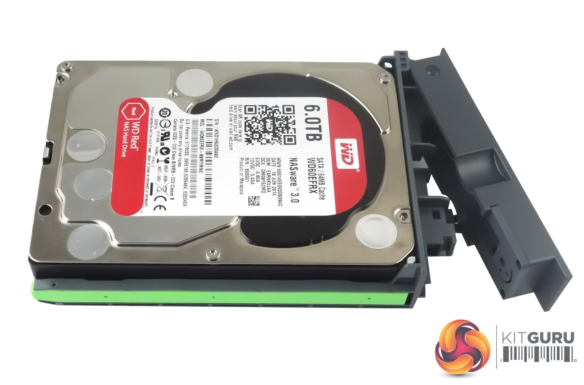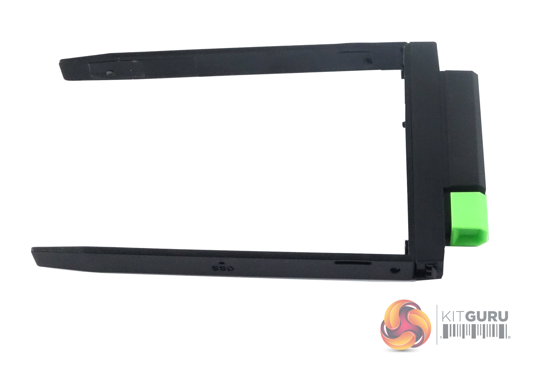The four main storage drive trays are tool free, the hard drives being held in place by a pair of pinned plastic strips that fit into the drive tray's sides. The pins pass through the holes in the tray sides and into the mounting holes on the sides of the hard drive. If you want to use 2.5in drives in the main trays then you will need to use the provided screws.
