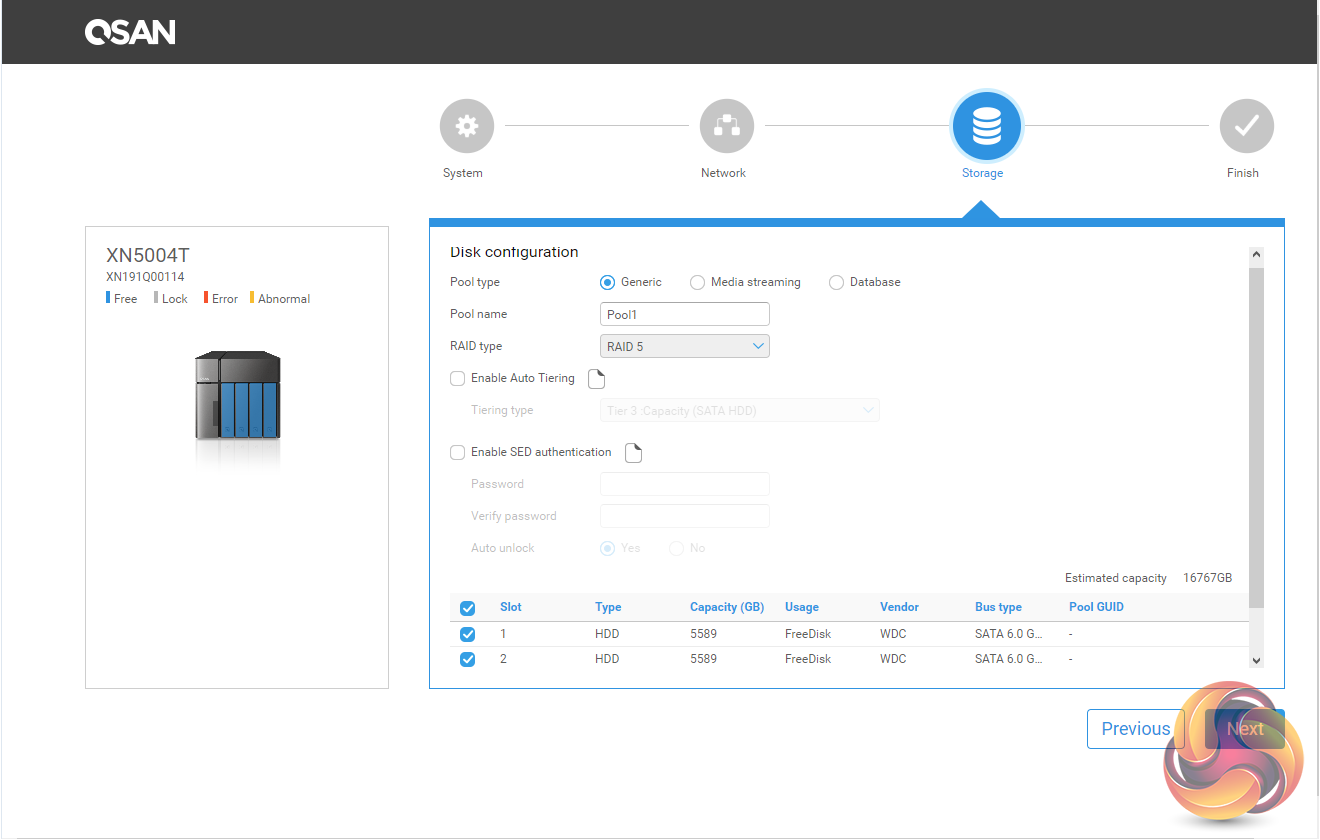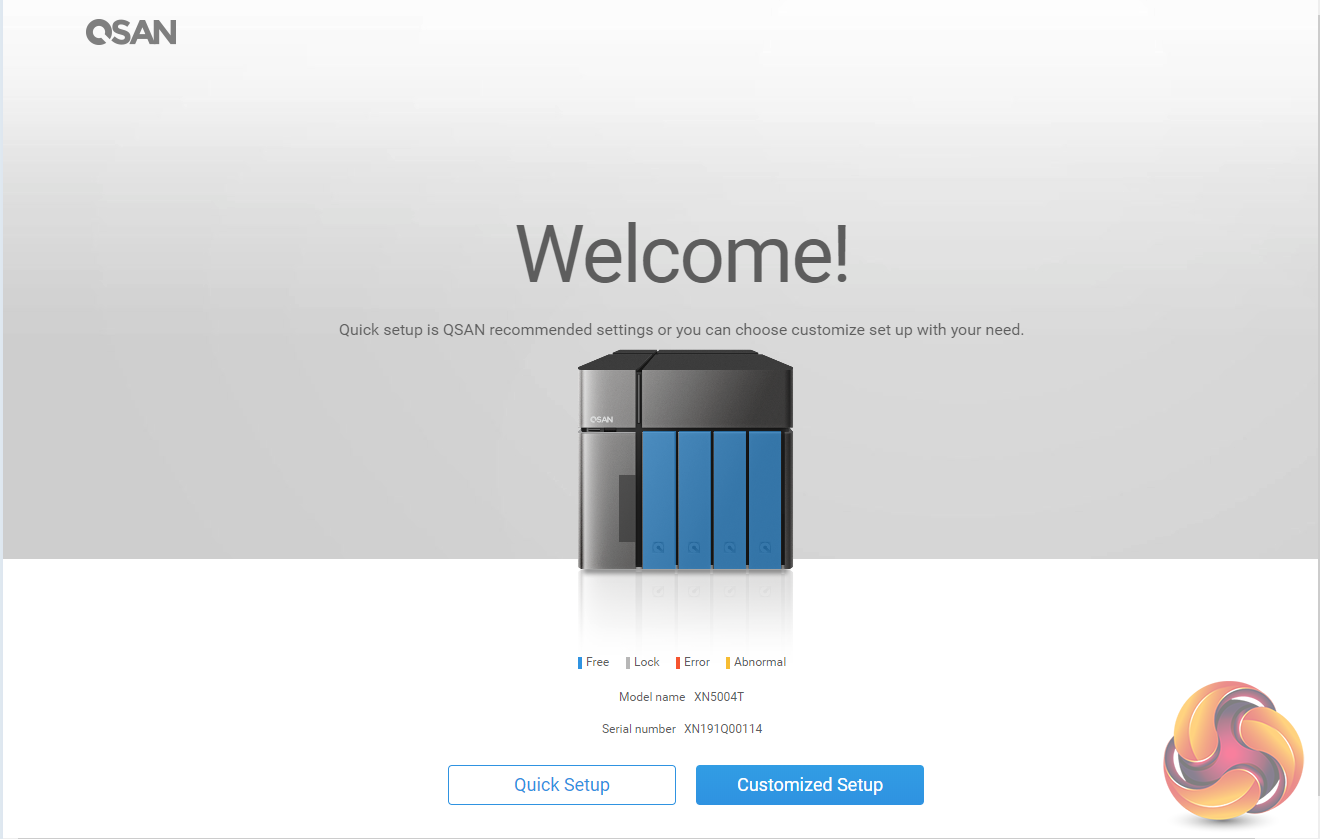 Usefully, the welcome page shows you straight off the bat if there is a problem with any of the drives, a very handy feature. There are two install options, Quick and Customised. Choosing quick sends you straight to the last page of the install procedure with the NAS setup in a default RAID 5 configuration.