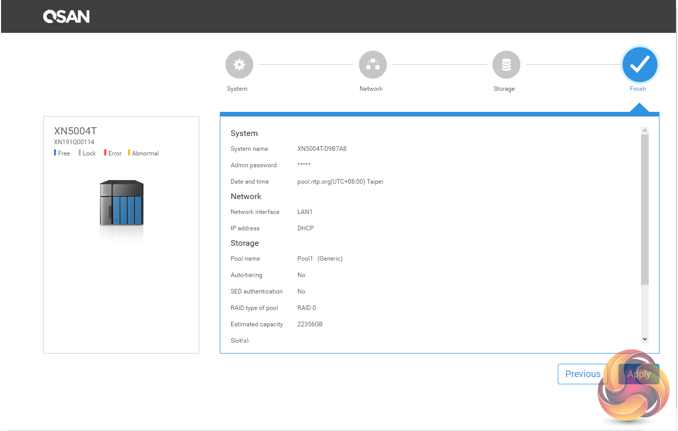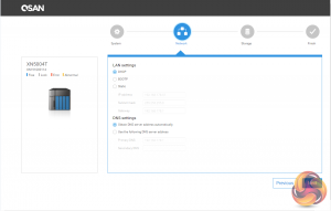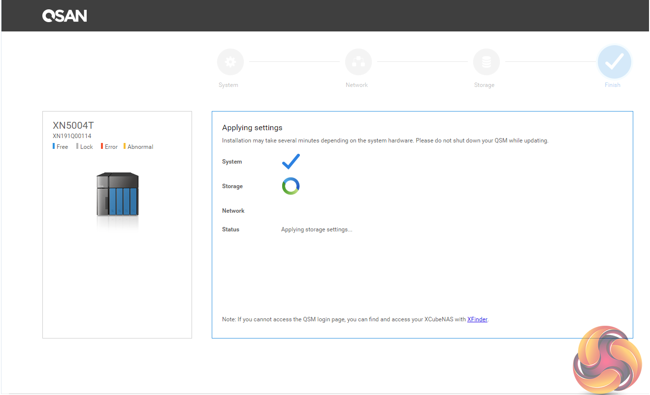 There are two ways to set up the XN5004T, either by using the WebFinder app or if there is a problem locating the NAS via the web interface, the Xfinder app which locates the NAS on the network. Clicking on connect in the web interface or double clicking the NAS on Xfinder brings up the first install/welcome page.