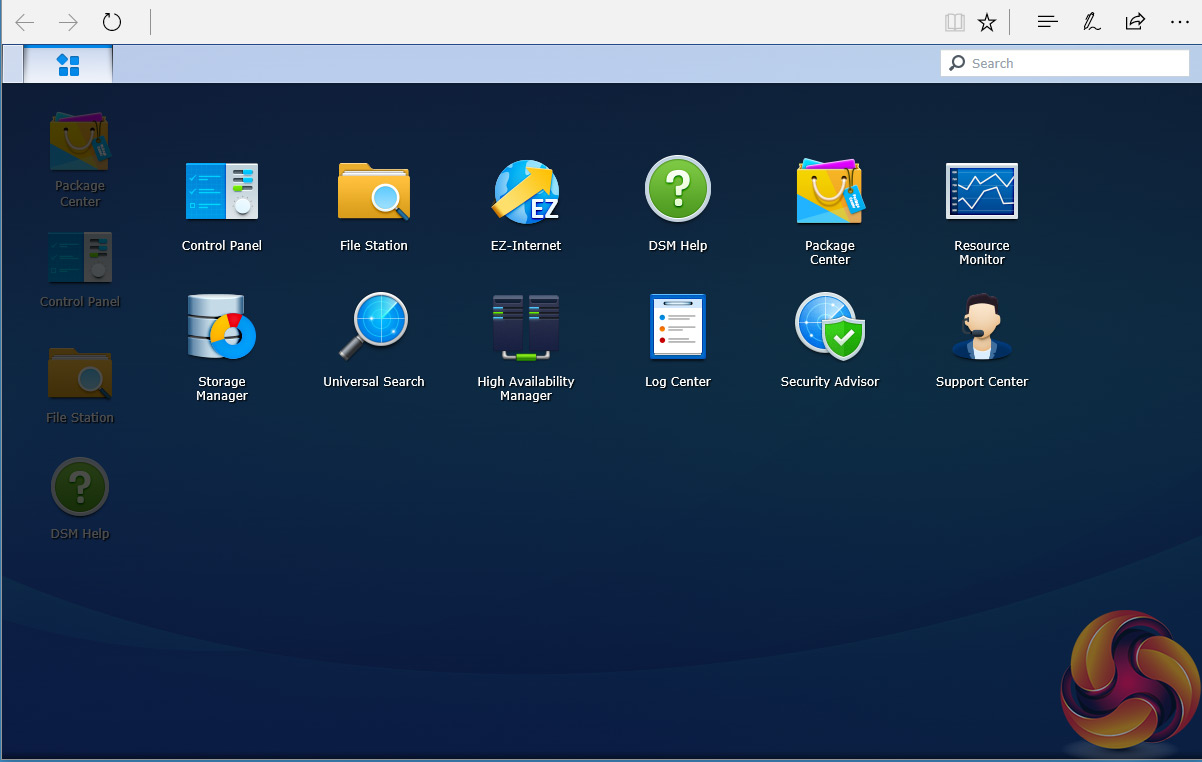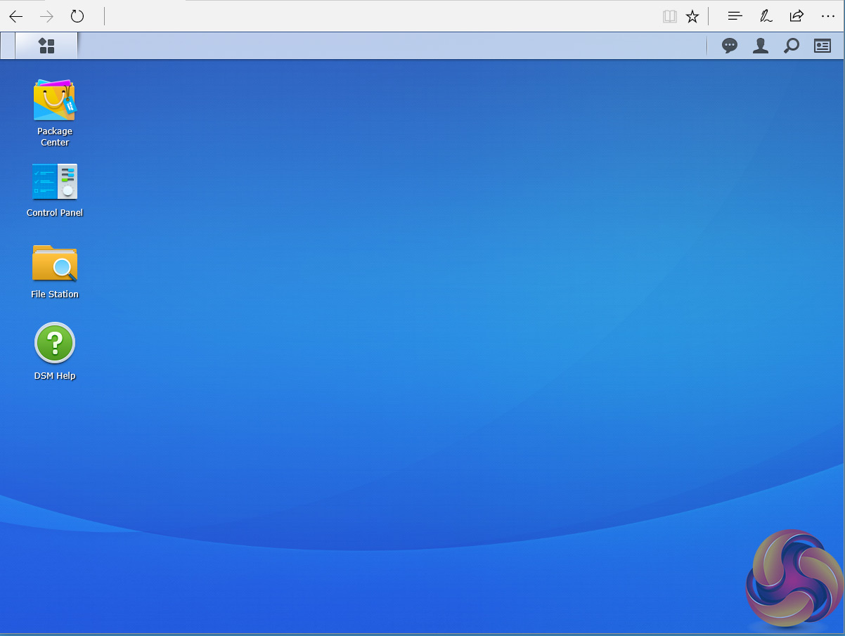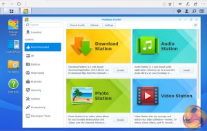 DSM has a graphically rich interface with all the major features of the OS clearly listed. The basic start page just lists four items; Package Center, Control Panel, File Station and DSM help.