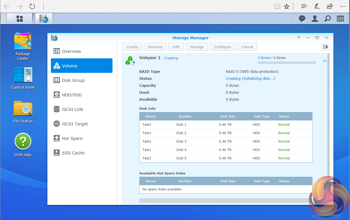 At the heart of DSM is Storage Manager. Storage Manager looks after RAID setups, volume creation (choose between Btrfs or ex4) and all other disk management duties.