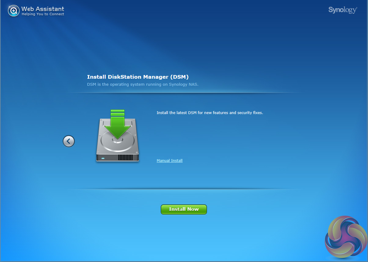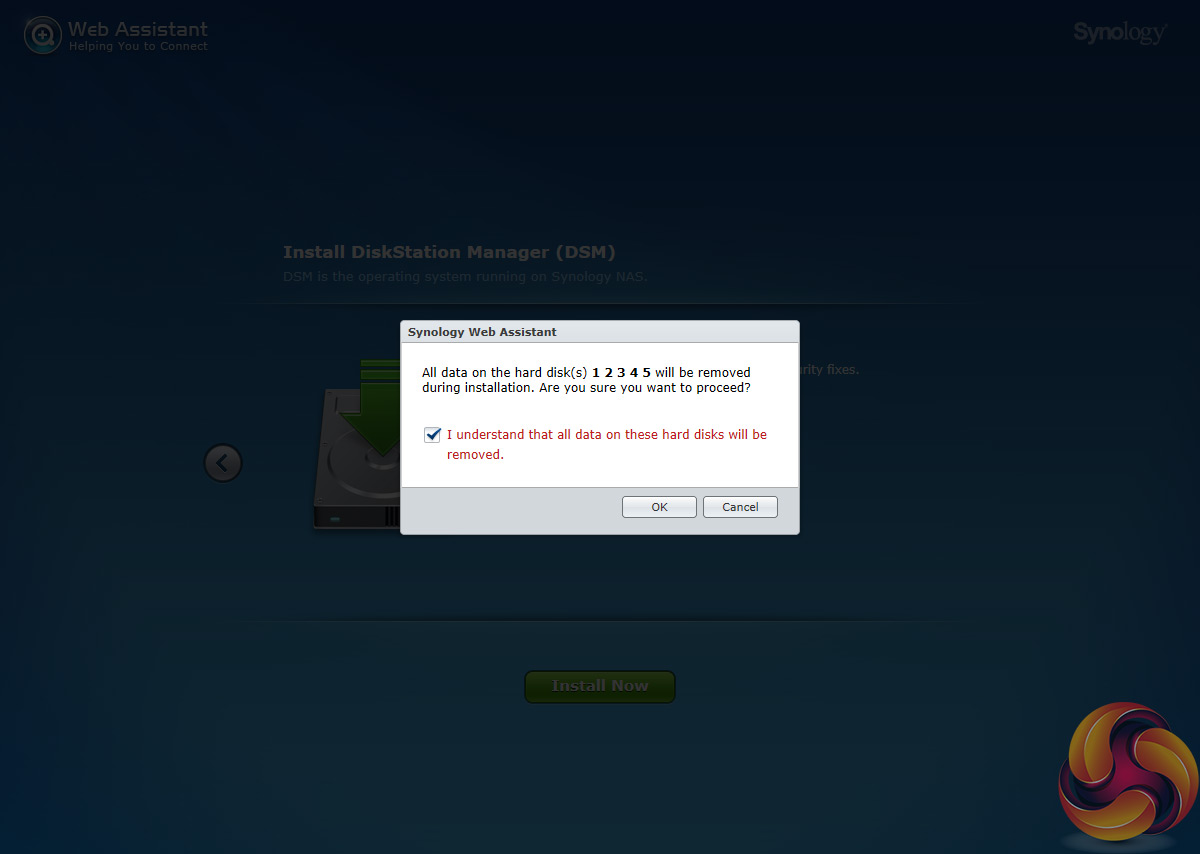 Once the NAS is found, the first window of the DSM setup wizard appears. Pressing install (there’s also a manual install option to install a downloaded instance of DSM ) automatically downloads the latest version of DSM and starts installing it after reminding you that any data on the hard disks will be deleted.