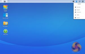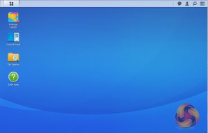 The basic start page just lists four items; Package Center, Control Panel, File Station and DSM help. Clicking on the left-hand top tab opens a small window with more advanced menu choices than the basic one.