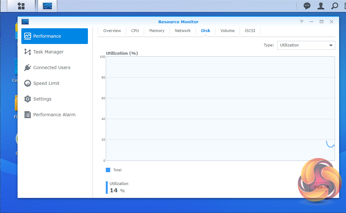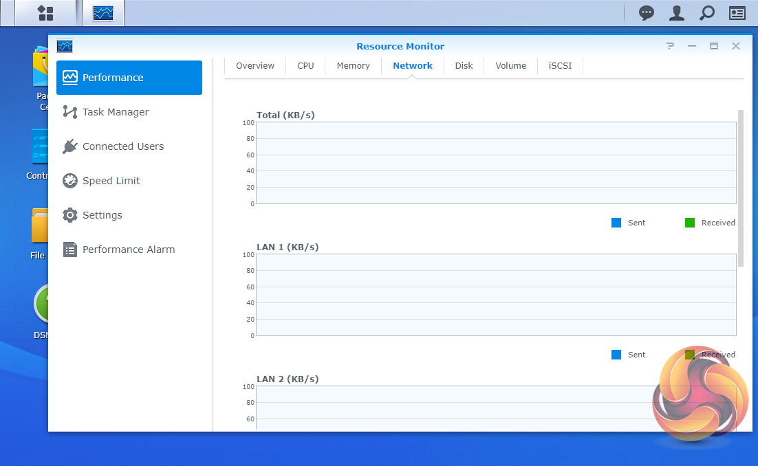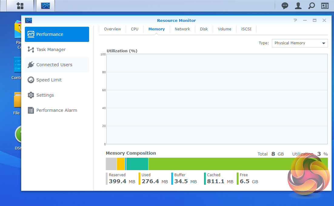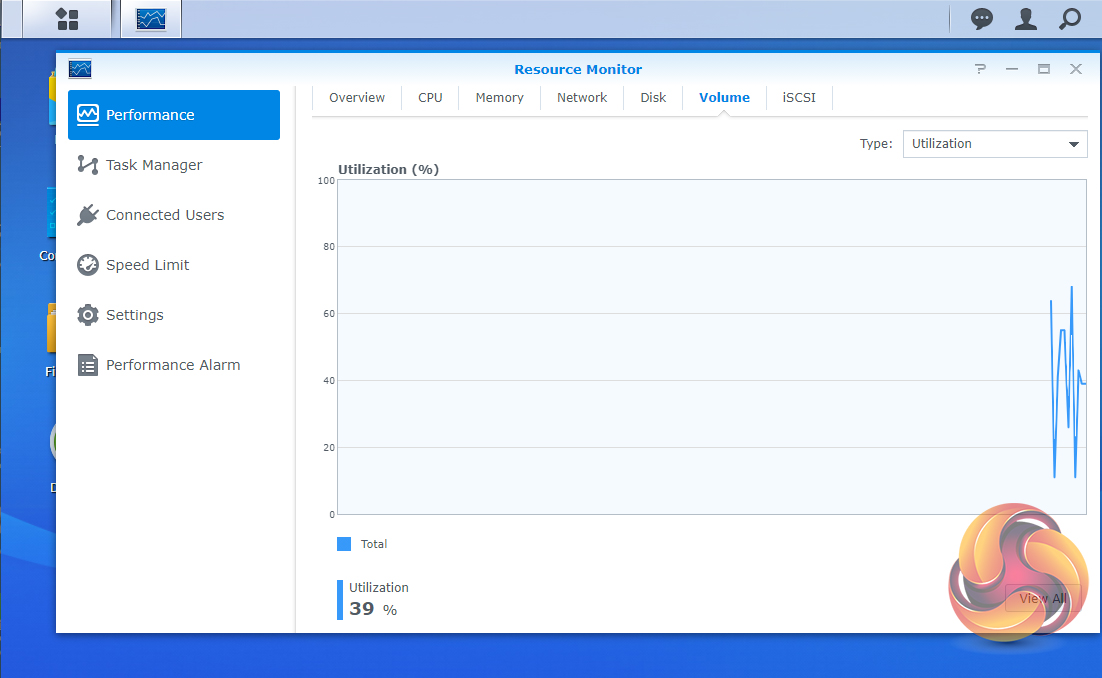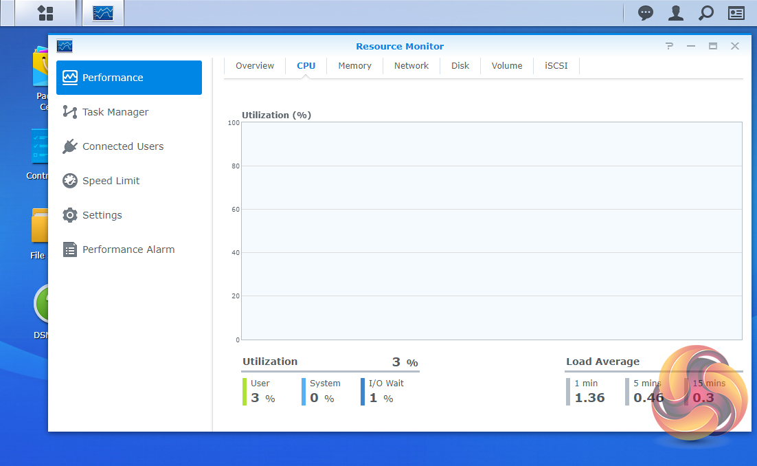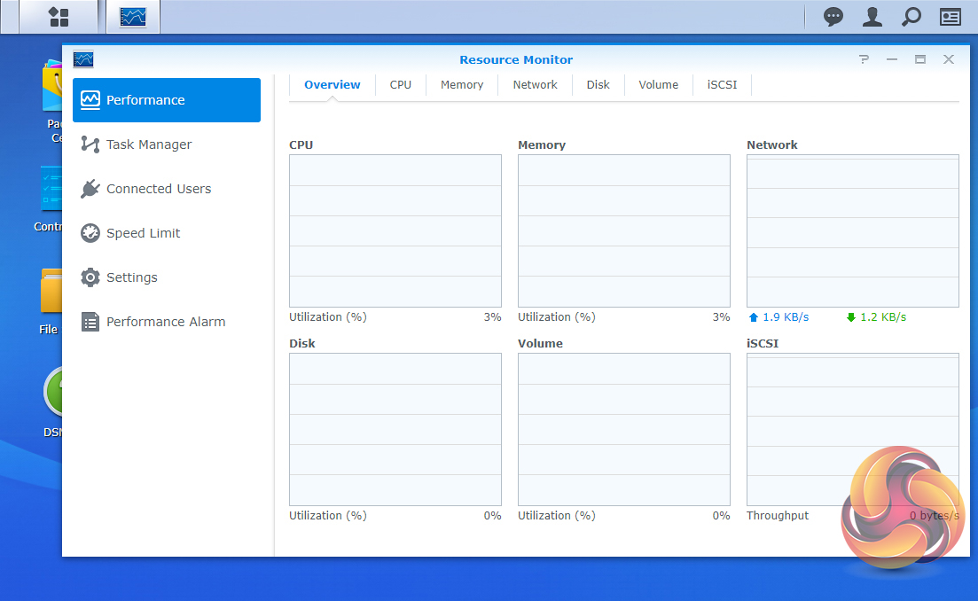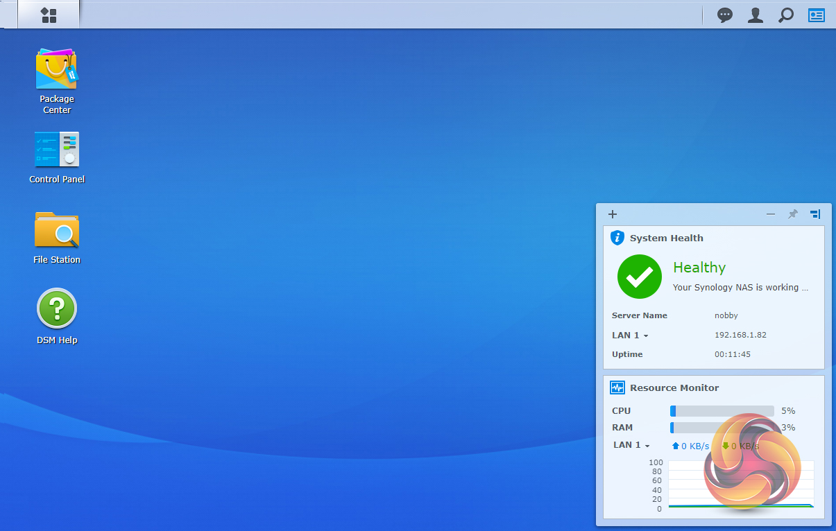 A very useful and easy to use tool for keeping an eye on the DiskStation’s resources is the Resource Monitor. With it, you can monitor CPU usage, memory usage, disk utilisation and network flow in real-time or historically. It can also be added to the widget section of the main window so that it's easier to access.
