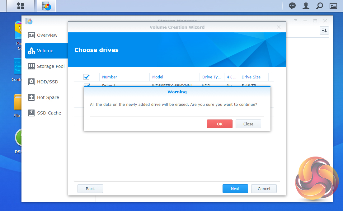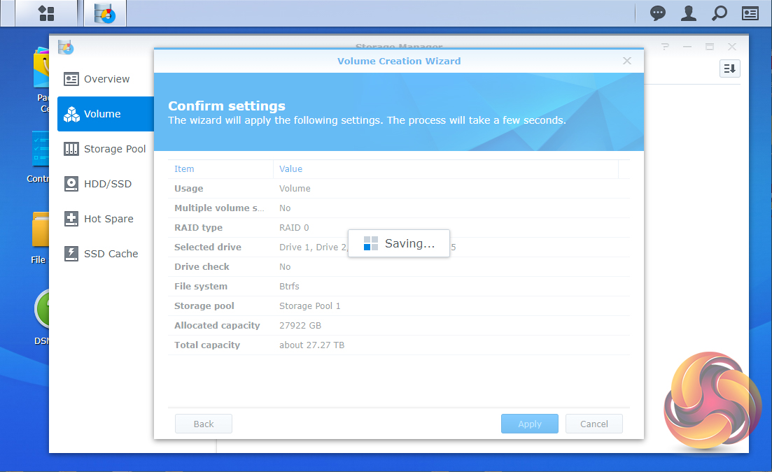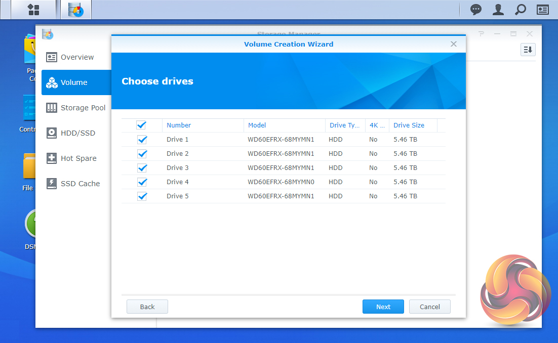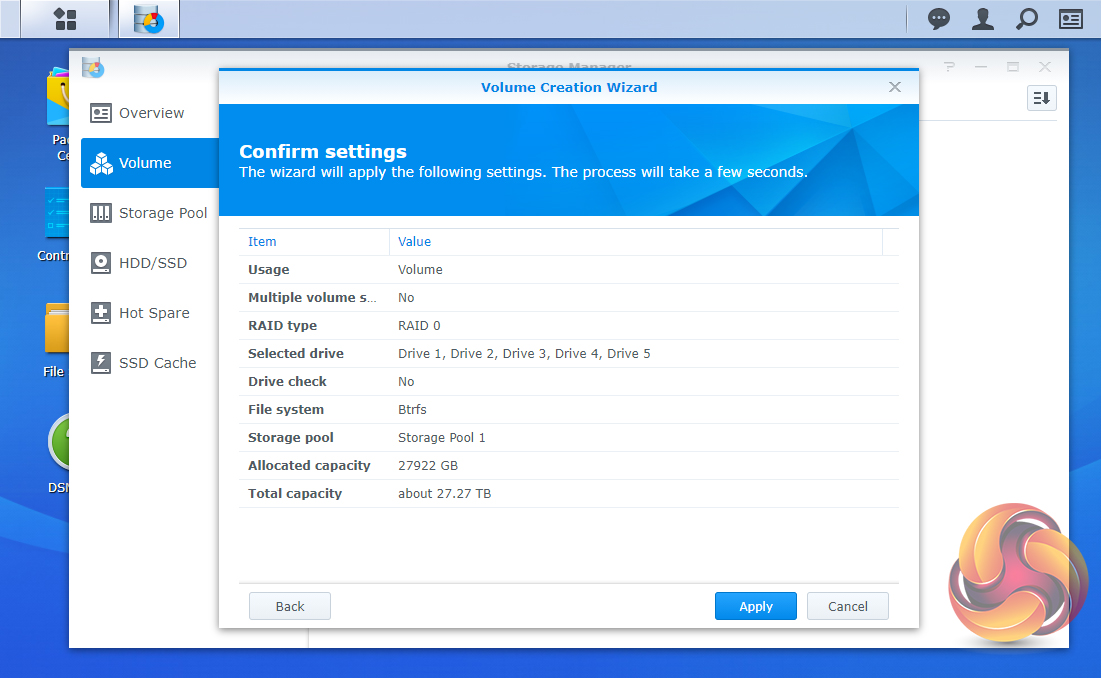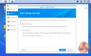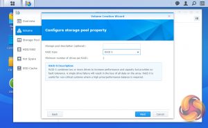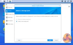 Creating storage volumes and pools is easy and straightforward thanks to the easy to follow setup wizard.