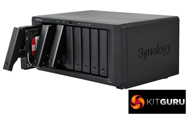 The 8-bay DiskStation DS1817+ sits just under the flagship desktop tower system, the 12-bay DS2115+ and offers a total storage capacity (with 10TB drives) of 80TB. Memory wise the DS1817+ comes in two options; 2GB or 8GB of DDR3 and it was the latter version that Synology supplied for this review. Should you require more memory, the unit supports up to 16GB of memory via two SO-DIMM slots.