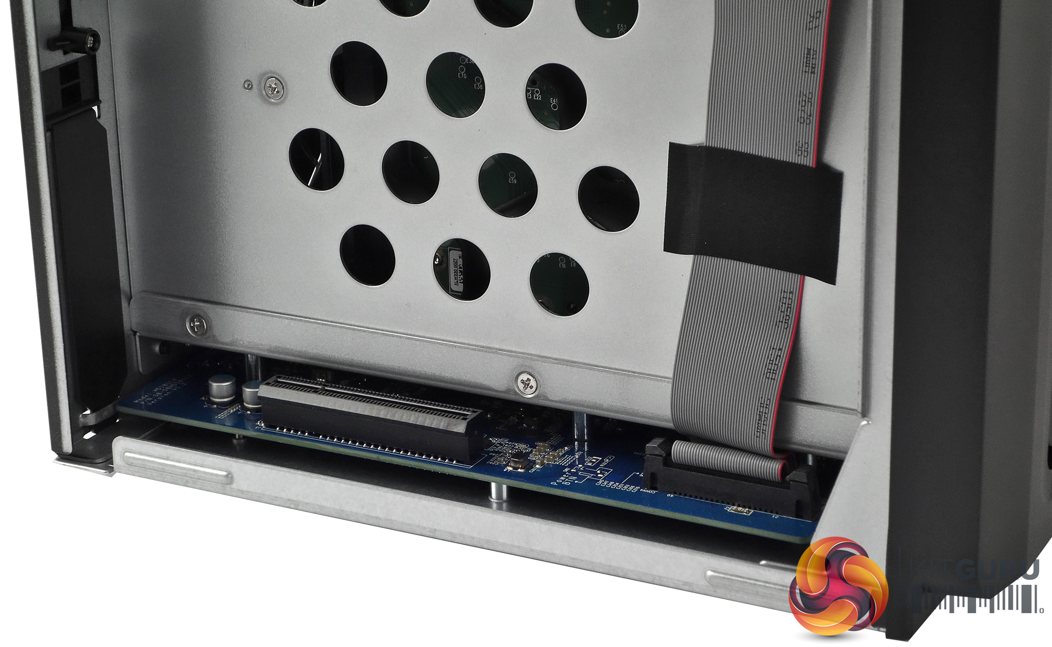 To access the PCIe slot you need to remove the cover which is held on by six screws in the rear panel. Currently the slot supports Synology's M2D17 SSD adapter card to add SSD caching capability or the E10G15 10GbE Ethernet card in single port (-F1) or dual port (-F2) versions.