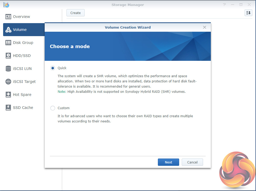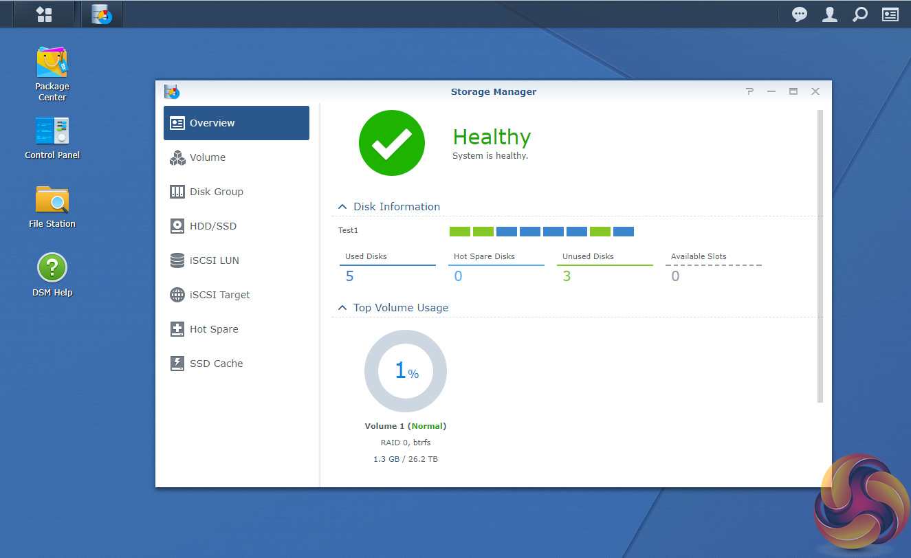 At the heart of DSM is Storage Manager. Storage Manager looks after RAID setups, volume creation (choose between the default Btrfs or ext4) and all other disk management duties.