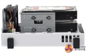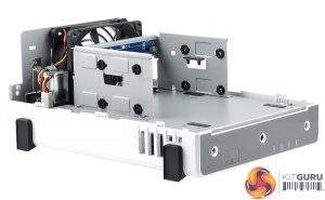 The four mounting holes for the pair of hard drives have rubber vibration reducing grommets in them which is a nice detail that Synology has added. The DS218j does support 2.5in disks but only by using the optional Type C Disk Holder which costs around £10.