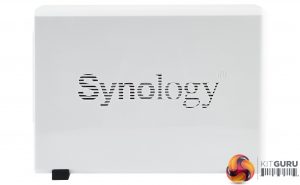To aid in the units cooling, both side panels of the enclosure have cut out Synology branding.