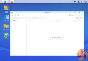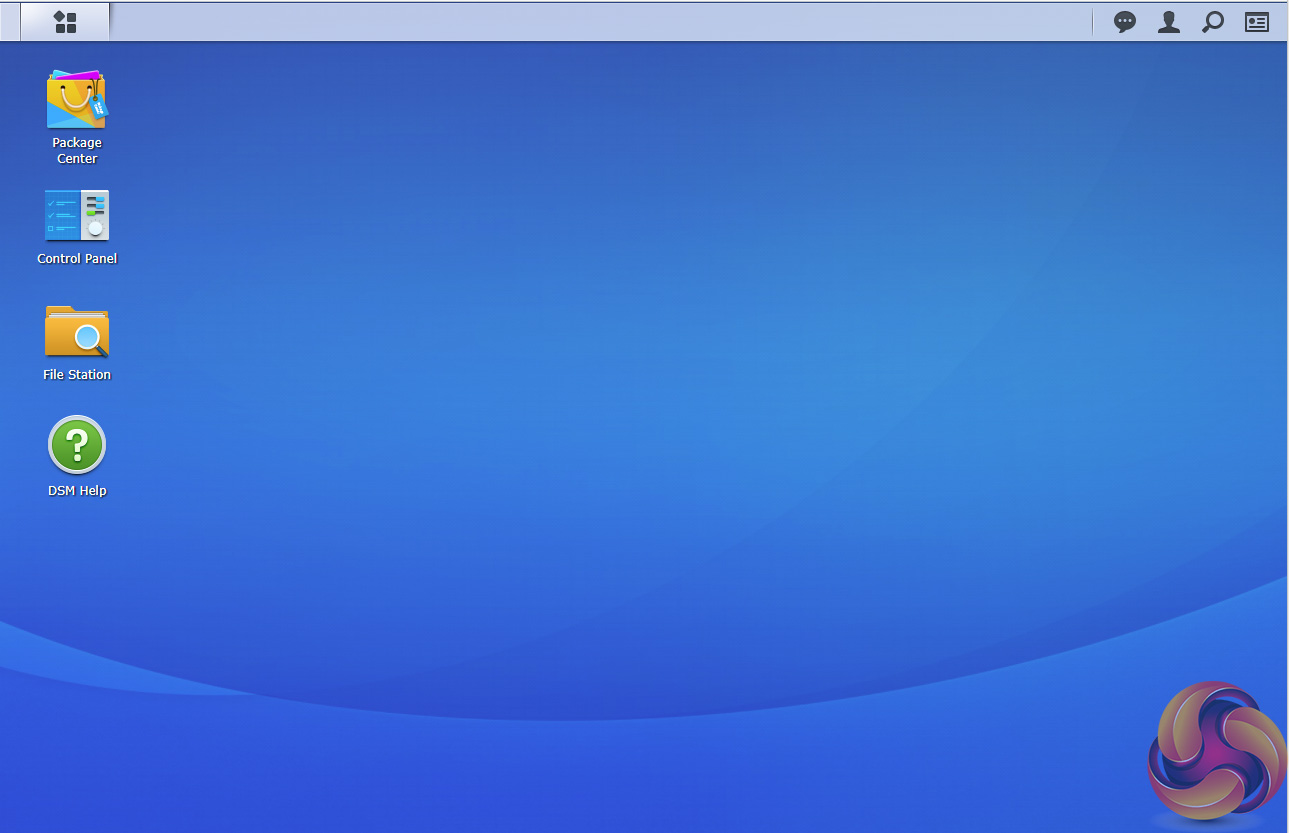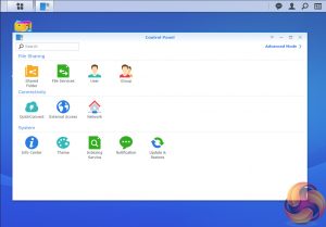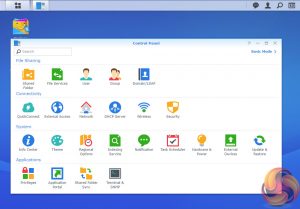 DSM has a graphically rich interface with all the major features of the OS clearly listed. The basic start page just lists four items; Package Center, Control Panel, File Station and DSM help. Clicking on the left-hand top tab opens a small window with more advanced menu choices than the basic one.