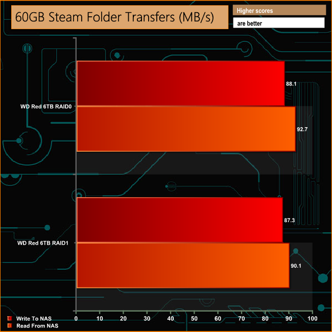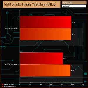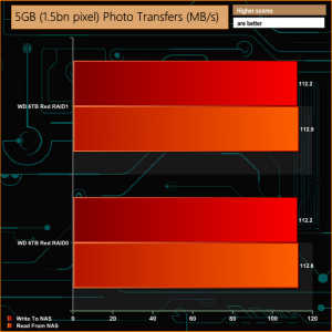 Our real life file transfer tests were dealt with by the DS218play without any drama, producing transfer rates of over 100MB/s for the majority of the tests.