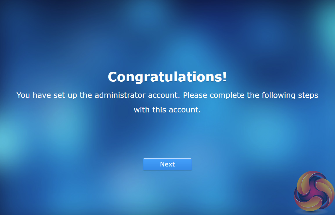 After the basic install has finished, the NAS is restarted and next up comes the setting up of the NAS account management, where you assign a server name, admin user name and password. The next window is where the DSM update settings are set.
