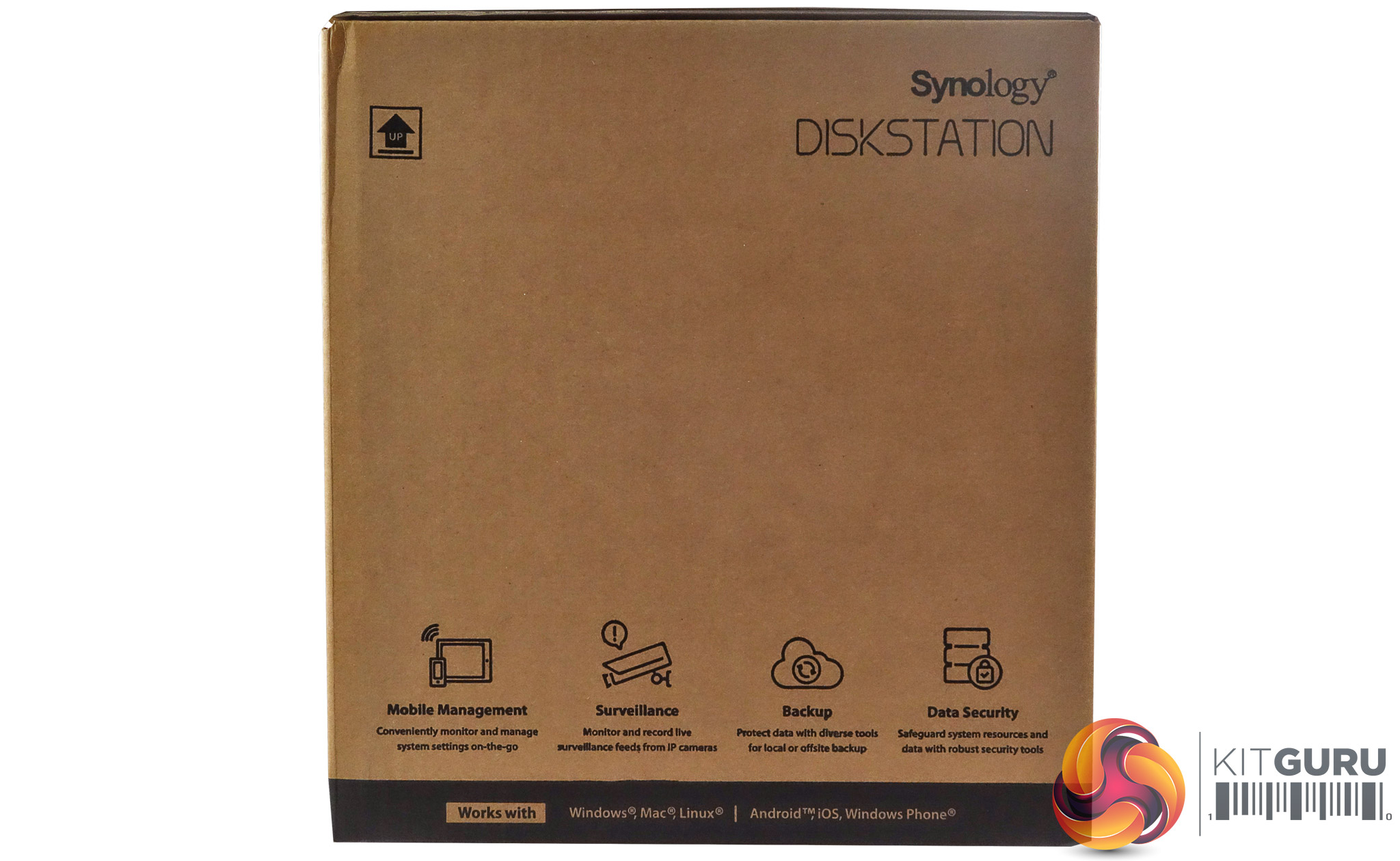 The Synology DiskStation DS916+ arrives in a smallish brown box with a label on the top right-hand corner. There is also an image of the unit detailing which memory version it is. Also displayed on the label are four feature points of the NAS; Quad core CPU, 4K transcoding support, dual LAN and the DSM OS.