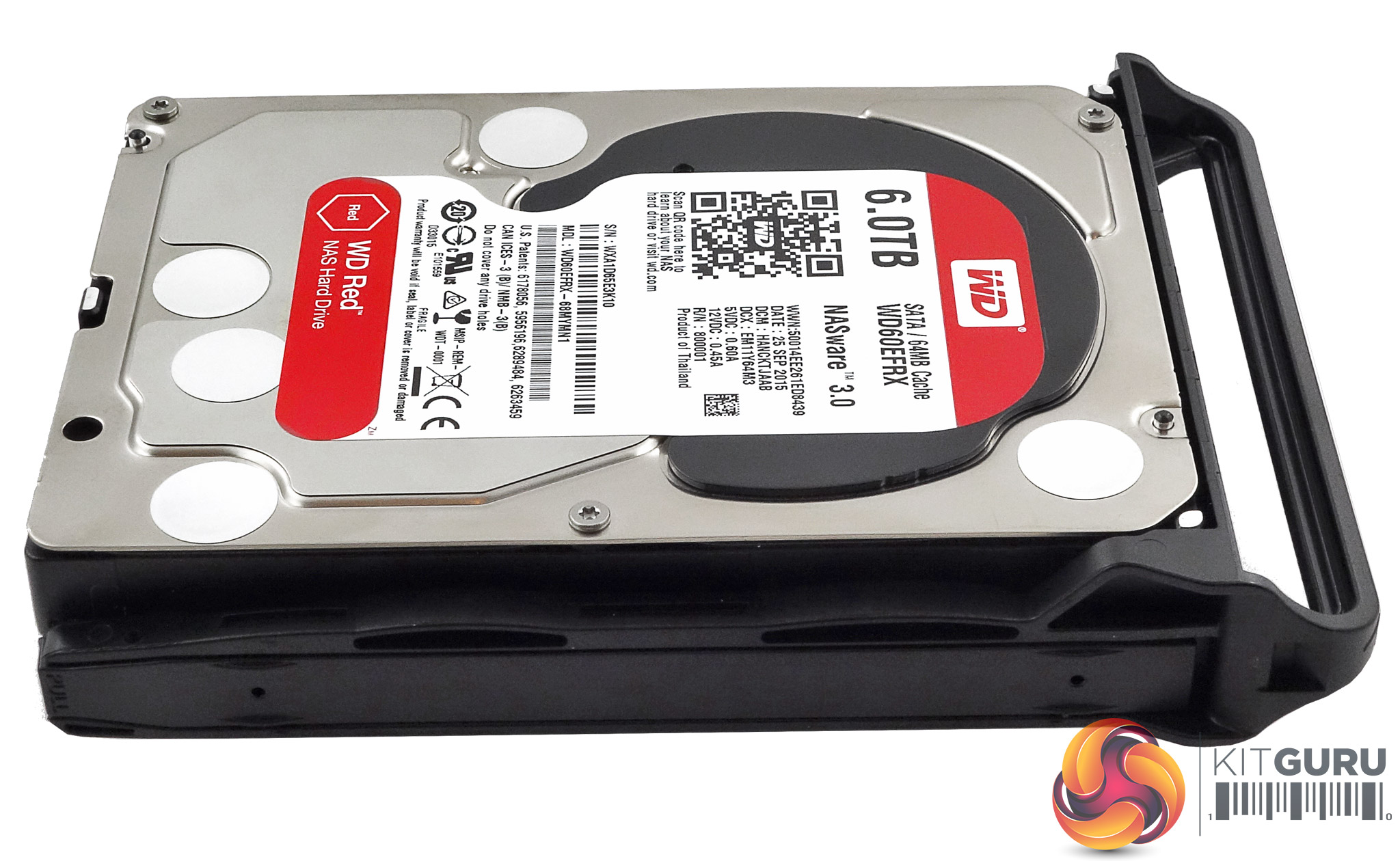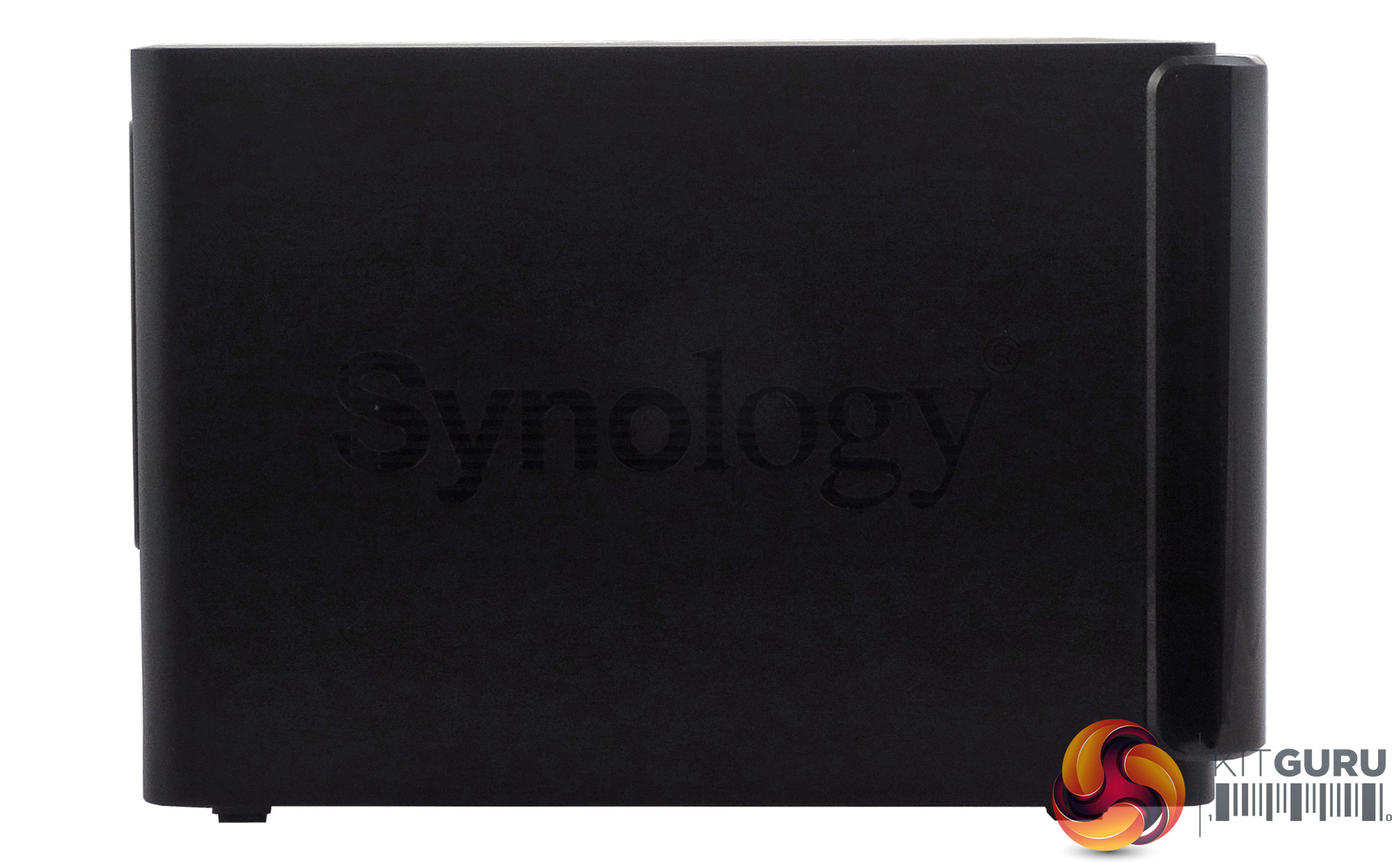 The four vertically mounted drive bays are hidden behind the pull off front panel which allows for easy access. The downside of this is the lack of physical security for the drives, which is something to be aware of if the NAS is in an office.