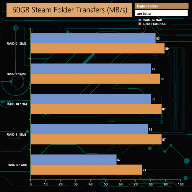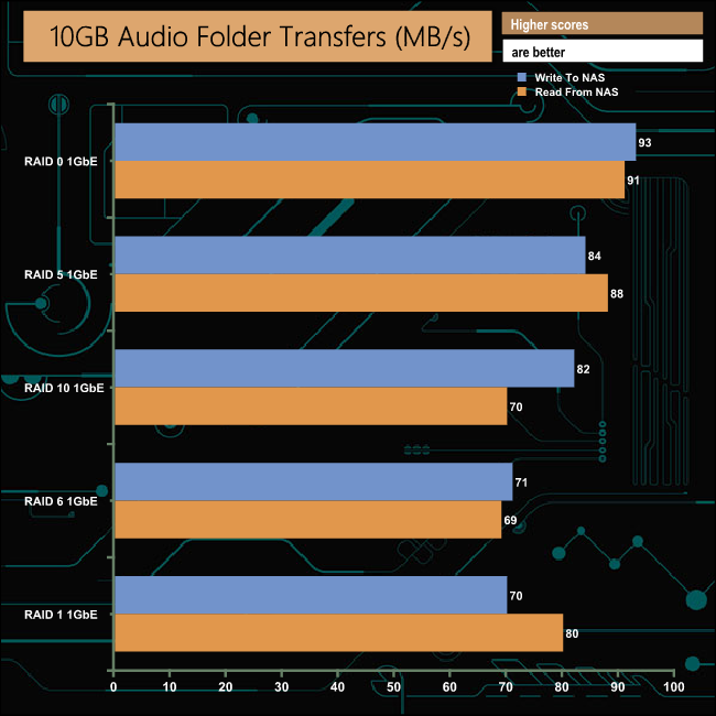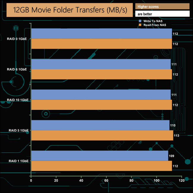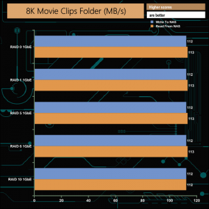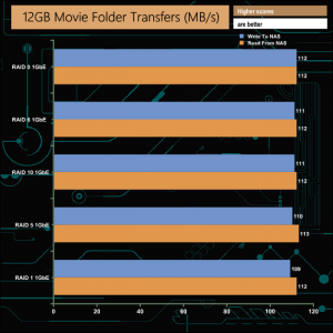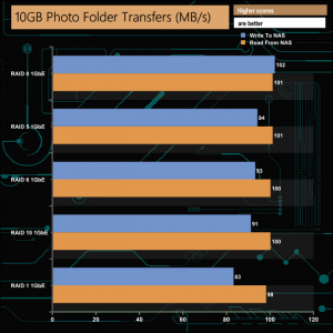When it came to dealing with our real-life file and folder tests, the DS920+ showed pretty consistent performance across the tested arrays.