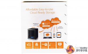 On one side of the box displays that the W5810 supports both Microsoft Azure and Office 365, data duplication, ADD (Active Directory Domain) services and has an embedded SSD. The other side of the box has an image of the front of the unit along with hardware specifications and software features.