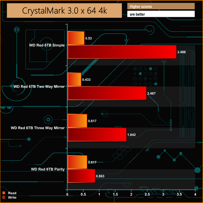 The W5810 doesn't deal with small bity files very well in general although having said that the write performance is much stronger than reads in all modes apart from when the disks are set up in Parity mode.