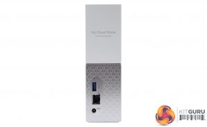 Where the two finishes meet at the front of the unit is a white LED activity indicator strip. WD's branding on the My Cloud Home is quite subtle, just a small embossed WD logo on the top white half of the unit while the rear panel carries the My Cloud Home name and the url of WD's My Cloud page. The rear panel of the drive just has a Gigabit Ethernet port and a single USB 3.0 (the My Cloud Home Duo has two) port, which only works for importing data. As for the power switch/button, don't worry, there isn't one.