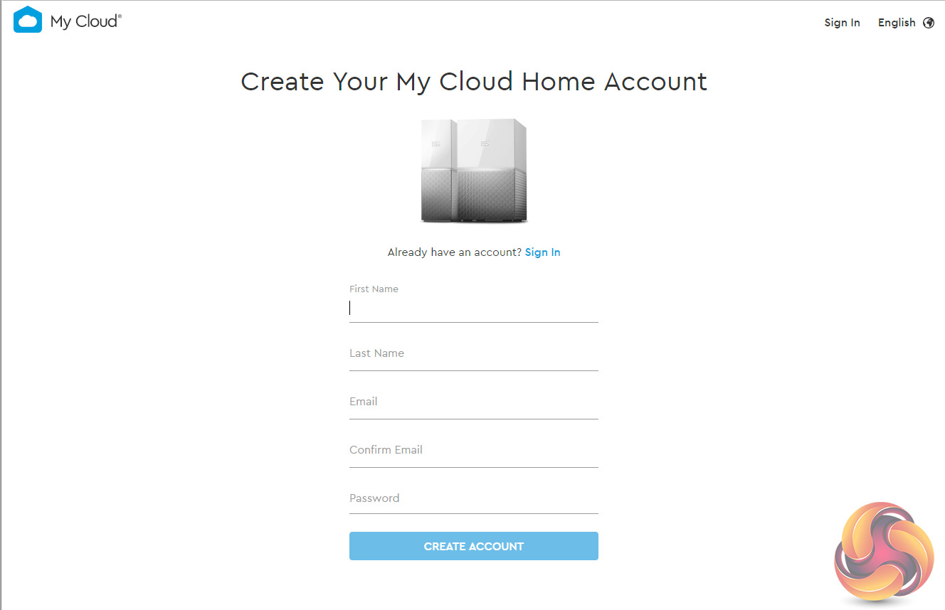 Next job is to access the Mycloud website – mycloud.com/hello, which can be done with either a PC or an iOS/Android phone to setup up the MyCloud account – or if you have one already, you simply sign in.
