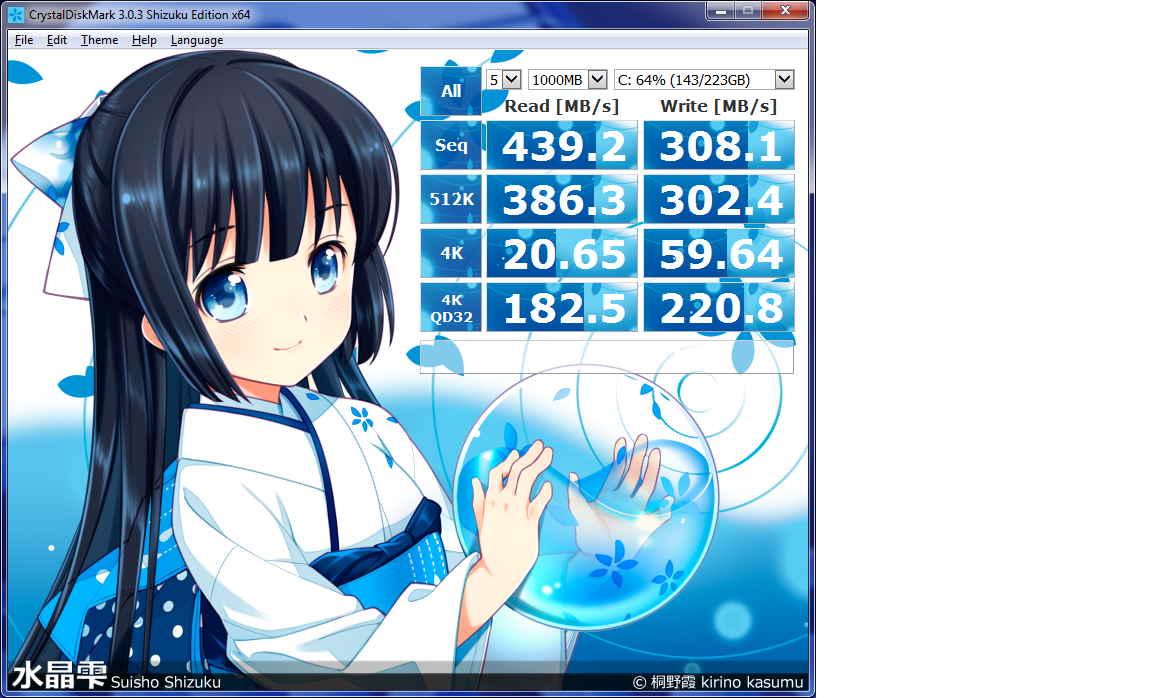 Crystalmark is a useful benchmark to measure theoretical performance levels of hard drives and SSD’s. We are using V3.0 x64. We use this program to test the onboard Intel Solid State Drive.