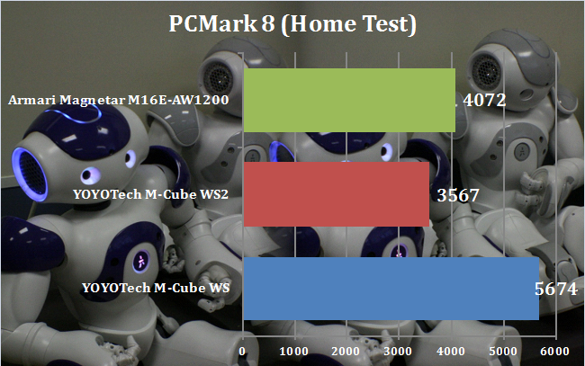 The Armari scores 4,072 points in PC Mark 8, showing decent ability in everyday tasks, although the multiple cores don't provide major benefit here, as can be seen from the comparison with the YOYOTech M-Cube WS, which sports an Intel Core i5-4670K running at 4.3GHz.