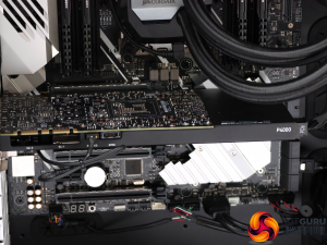 There are four full-sized DisplayPort connections, each of which can drive a 4K monitor up to 120Hz or a 5K monitor up to 60Hz. There are the usual Stereo and Sync headers, with PC Specialist having installed the rear connector plate for the former.