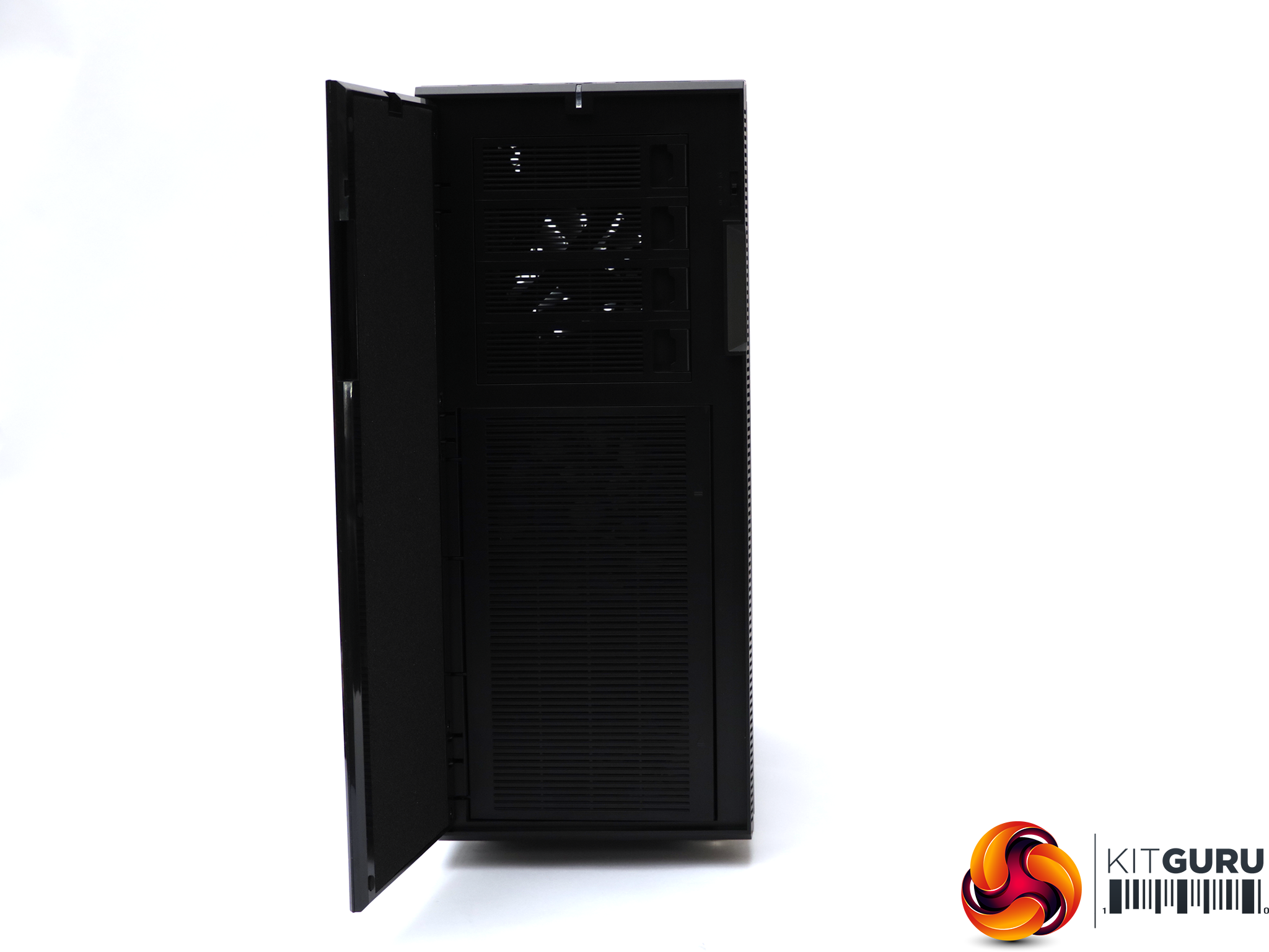 There are four 5.25in front-accessible bays above, which can be accessed by swinging open the huge door on the front of the case. In other words, there's an enormous amount of storage potential from this chassis.