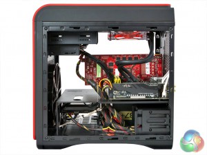 The front has space for single 5.25in and 3.5in drives, although neither were installed on our test sample. We would have liked at least a DVD rewriter, and a mult-format memory card reader is always a useful inclusion. Inside, there's space for two 2.5in or 3.5in drives, plus a tray for a further two 2.5in drives.