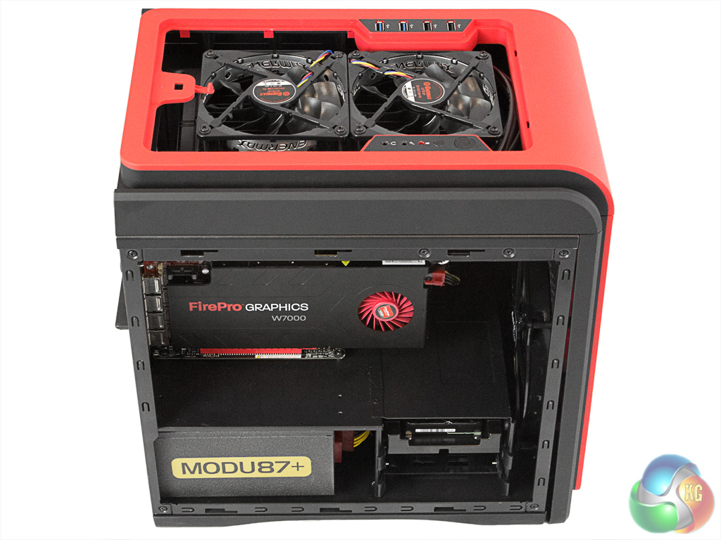 Our sample had a window, which is an option that some professionals might not want. But the interior is tidy and compact, so not unattractive. As mentioned earlier, the top has a couple of USB 2.0 and 3.0 ports, plus audio connectivity and the power and reset buttons.