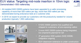Read More »ASML: EUV tools continue to make progress, adoption to start in 2016