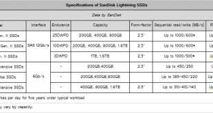 SanDisk Corp. on Wednesday unveiled a new breed of high-performance solid-state drives for enterprise-class systems. The drives boast up to 1GB/s read speed, Serial Attached SCSI interface with 12Gb/s maximum bandwidth and increased endurance thanks to SLC NAND memory and SanDisk's proprietary technologies.. SanDisk Lightning II family of solid-state drives …