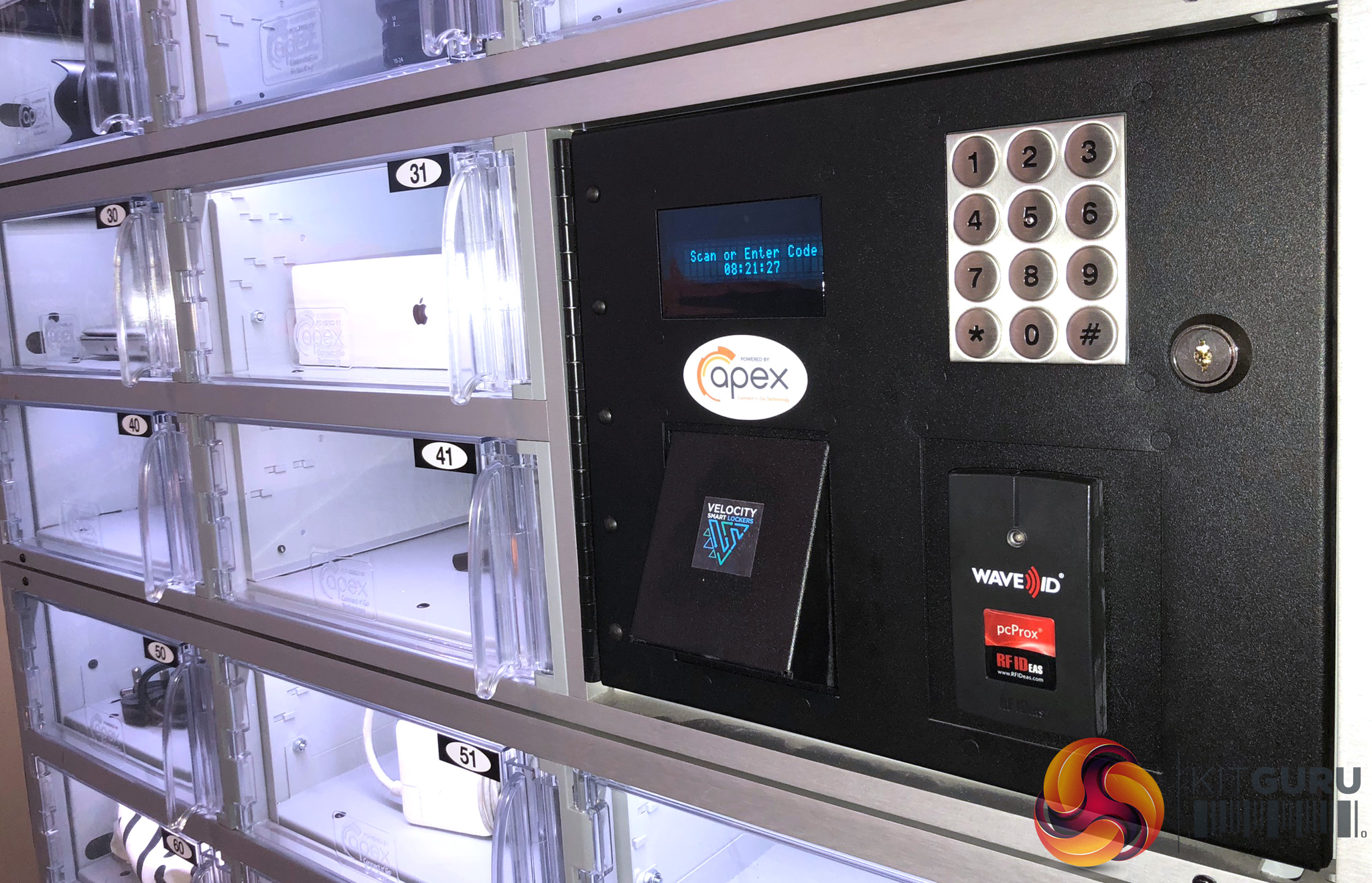 “It's fully compatible with the leading service management packages and the complete cycle of request-authorisation-collection can be as little as 60 seconds – even with security measures in place”, we were told. The units we saw had see-through polycarbonate doors for demonstration purposes  but the system also supports blacked out or even stronger metal doors. Velocity demonstrated the product to us using an emailed bar code, but it could just as easily have been a PIN code or special ID.