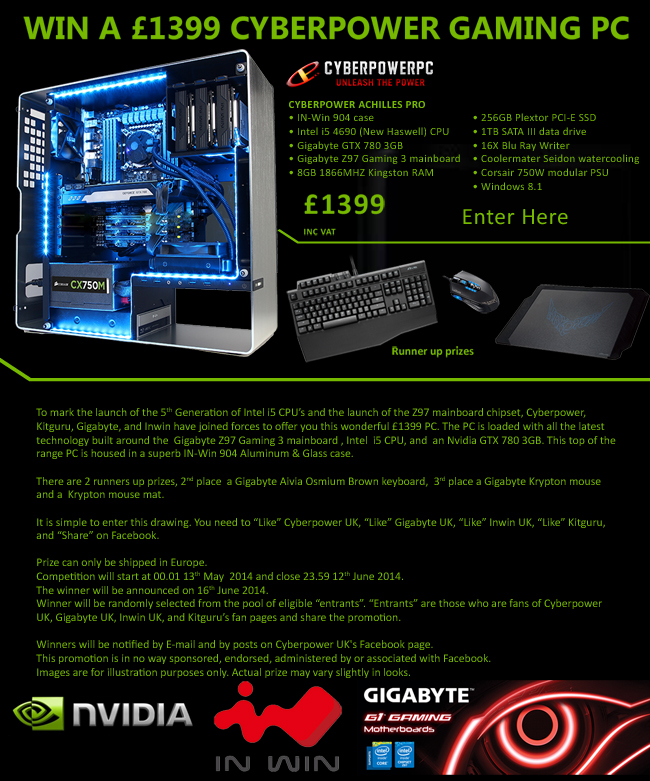 To mark the launch of Intel's 5th Generation Core Processor range, Cyberpower, Gigabyte, InWin and KitGuru have joined forces to offer you this AMAZING OPPORTUNITY TO OWN A KILLER SYSTEM on the latest platform.
