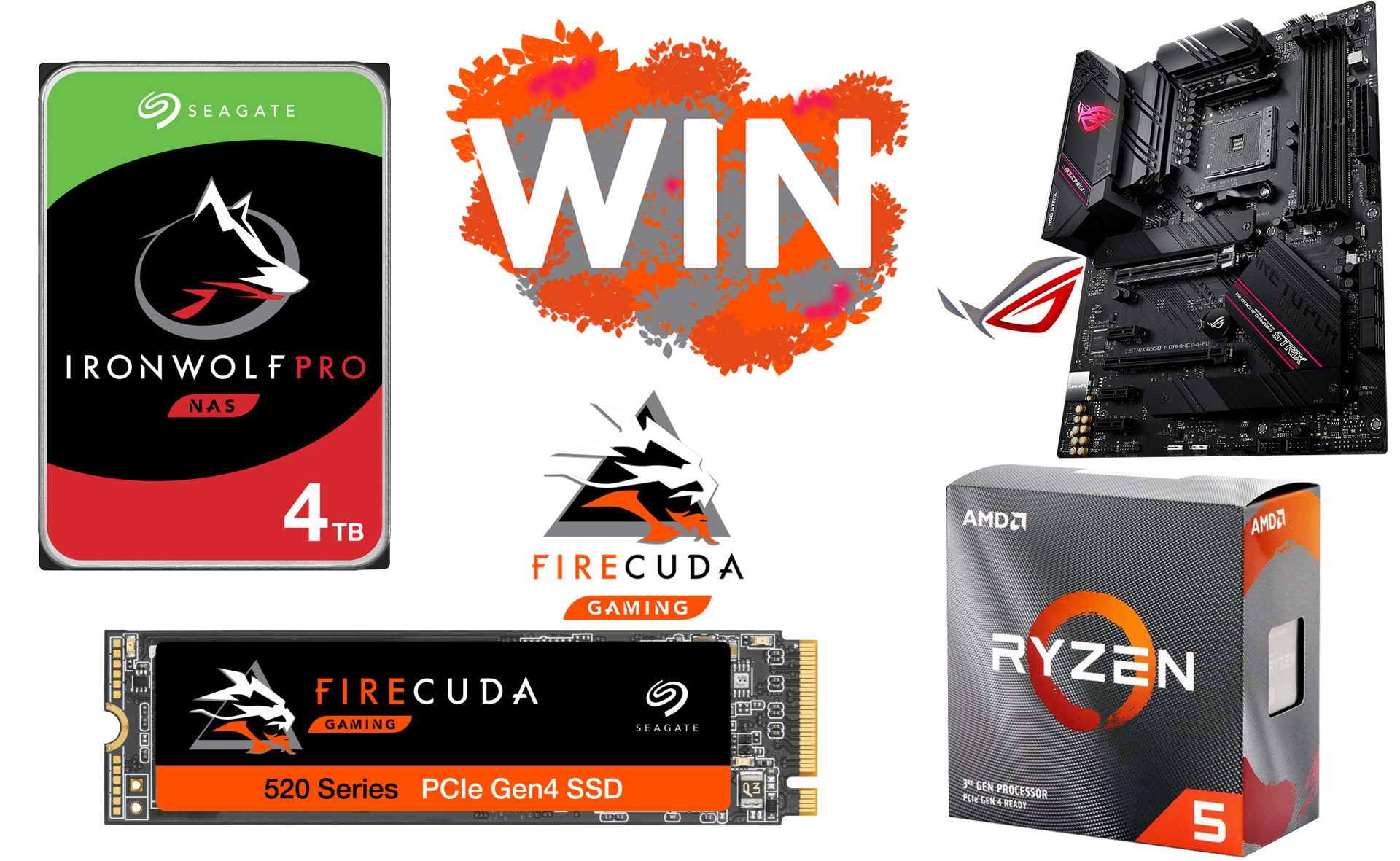 We are back with another competition, and this month we have partnered with Seagate to offer you the chance to win a mega hardware bundle – including a FireCuda 520 PCIe Gen4 SSD, a Ryzen 5 3600 processor, ASUS ROG's B550-F motherboard, and a 4TB IronWolf Pro hard drive!