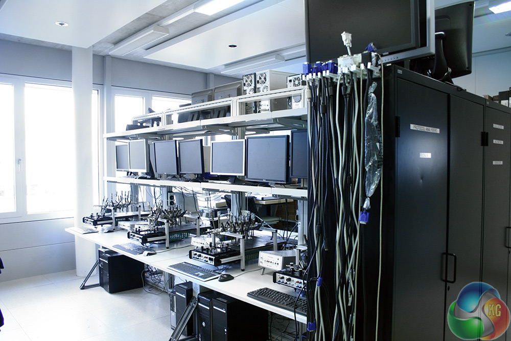 And so we were ushered into this room, featuring giant workstations and desks three deep (double sided) that had upwards of five testing stations a piece, each running some sort of testing profile on a particular piece of Logitech gear. Mostly its keyboards. [yframe url='http://www.youtube.com/watch?v=Tv8tS0Hlx4c']