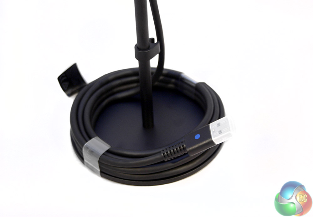 The camera hooks up to your PC via a single USB cable, which is at default attached to the base through a plastic strip – like most of the Rift's cabling. It has a small blue sticker to denote which way to plug-in the USB header and there is a small clip at the base of the stand to keep the cable tucked in if needed.